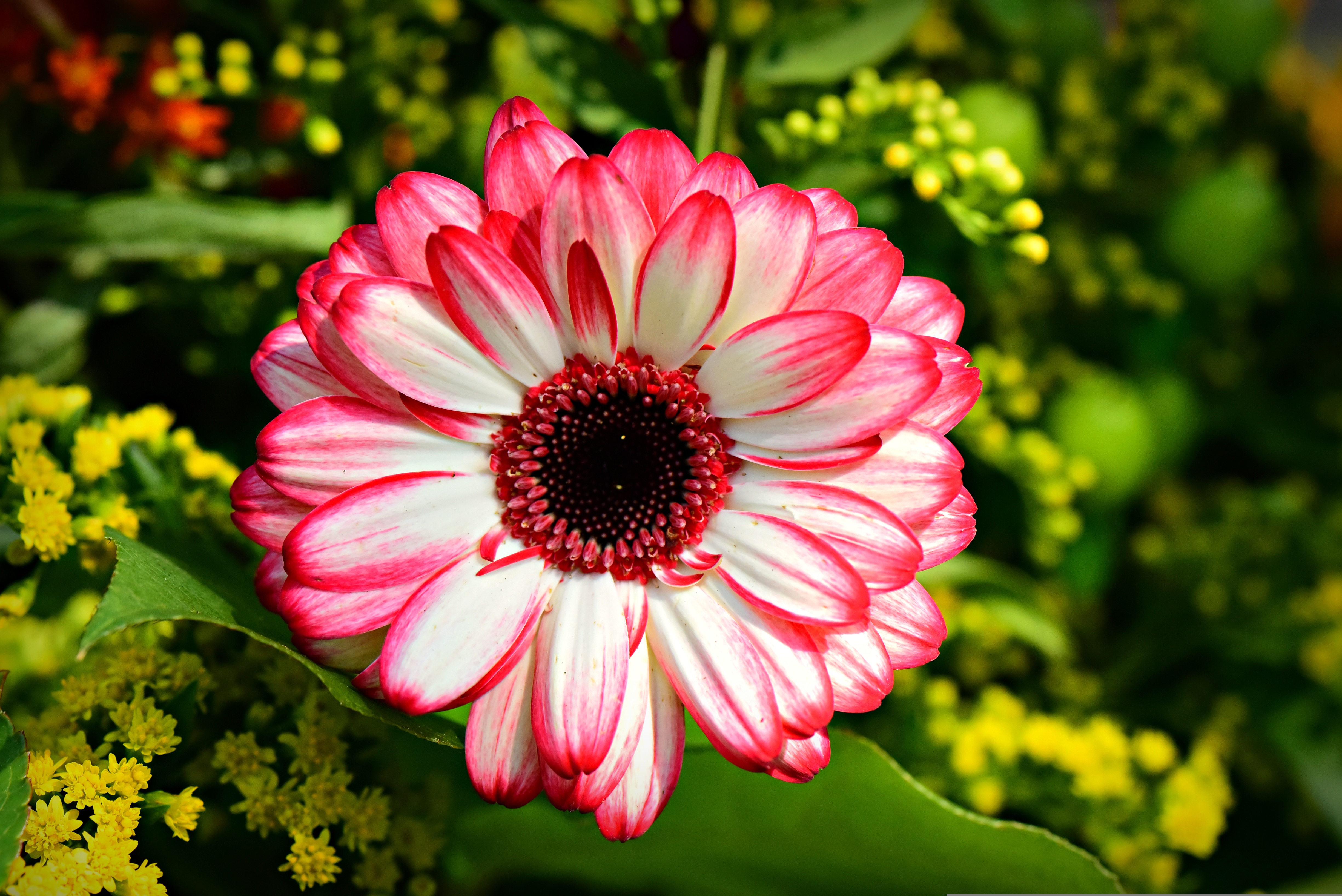 Розовая гербера крупным планом на клумбе - 4900x3271