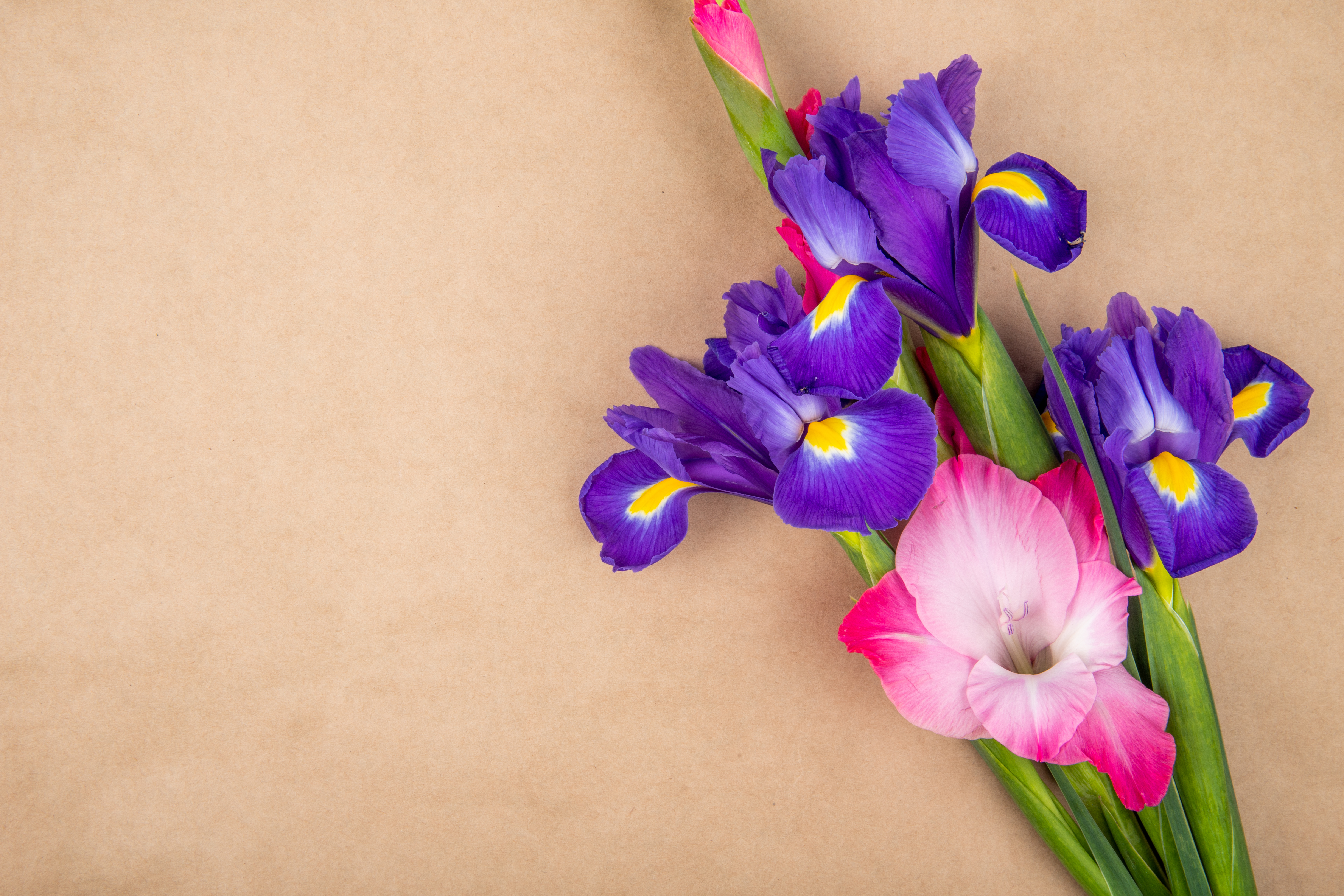 Цветы ириса с розовым гладиолусом - 6240x4160