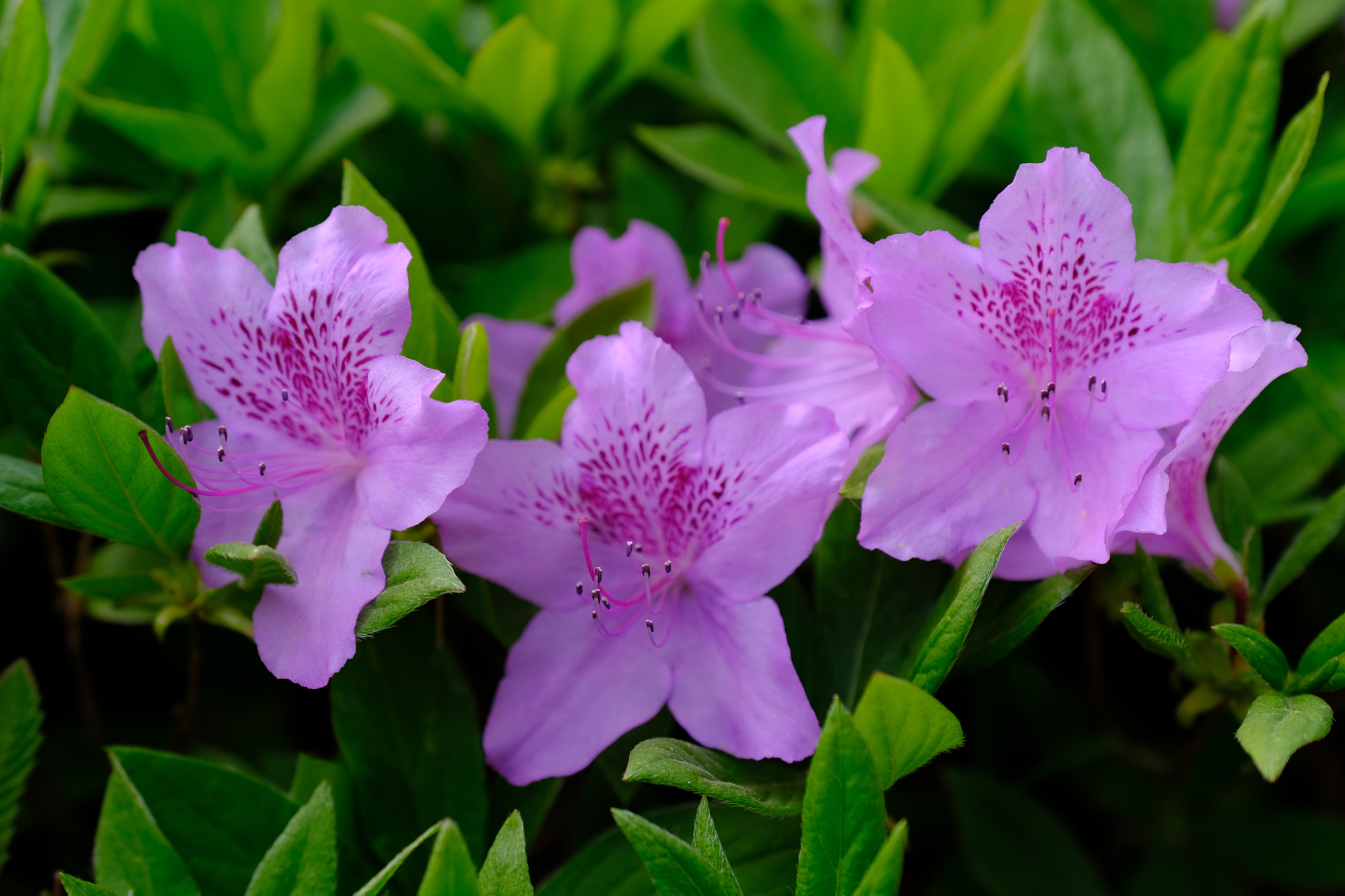 Розовые цветы азалии в зеленых листьях - 6240x4160