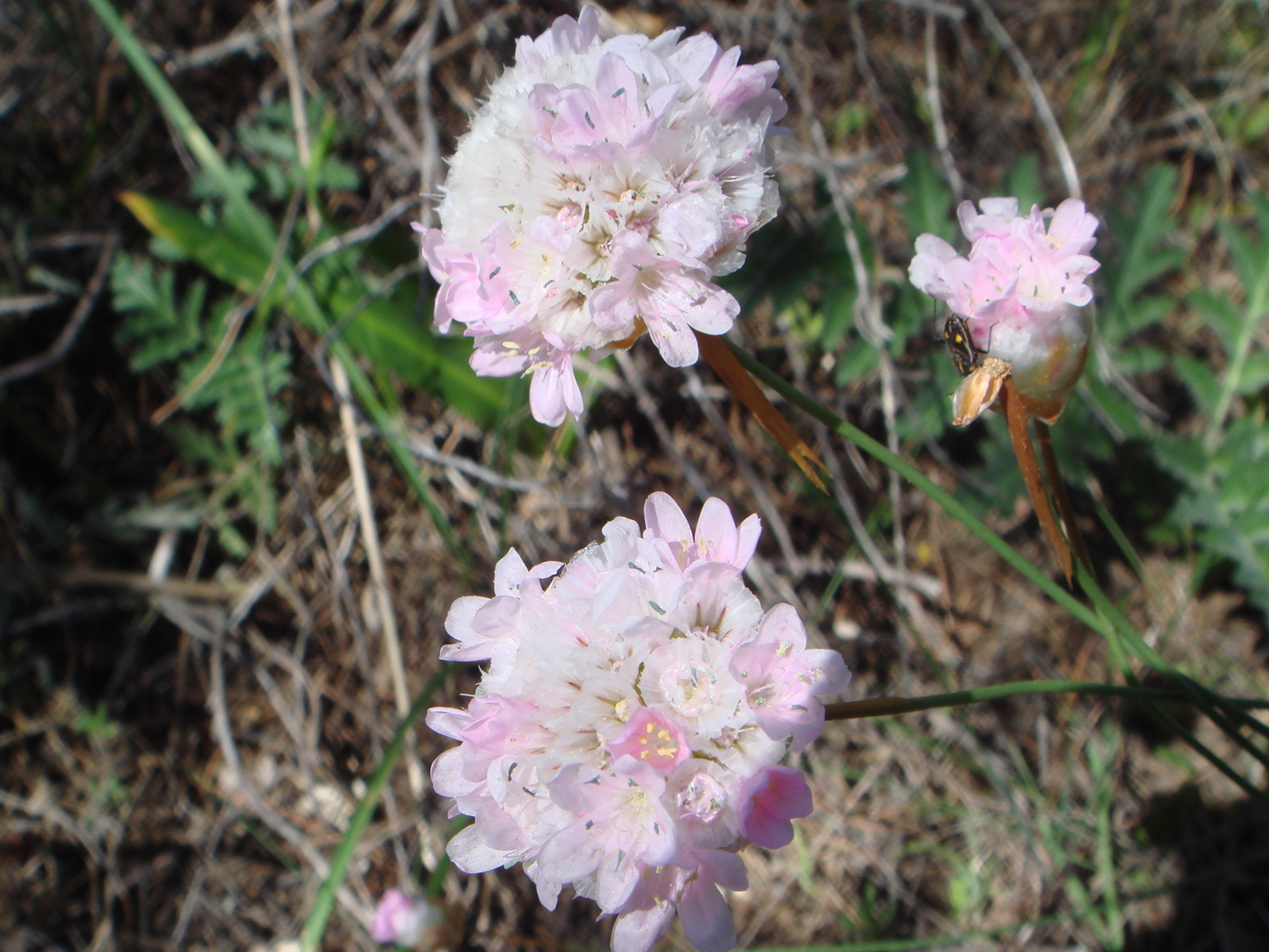 На поляне красивые цветы армерия