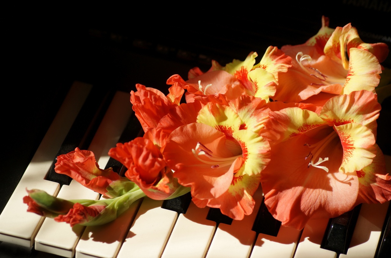 Оранжевые с желтым цветы гладиолуса - 1280x844