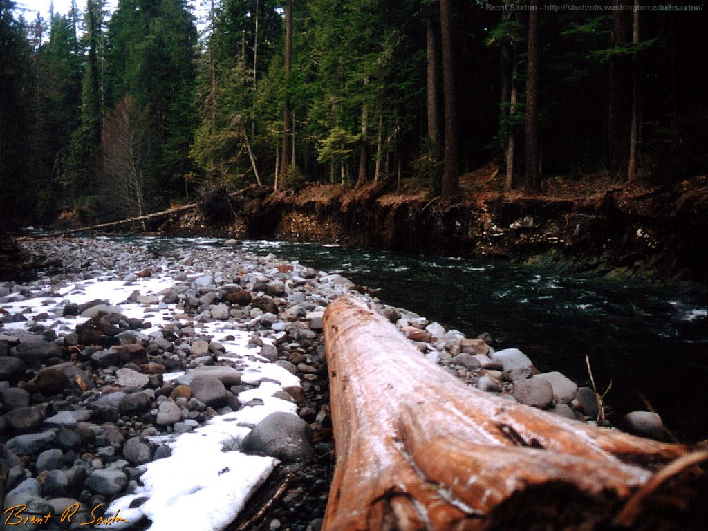 Покрытый снегом лес у холодной зимней реки