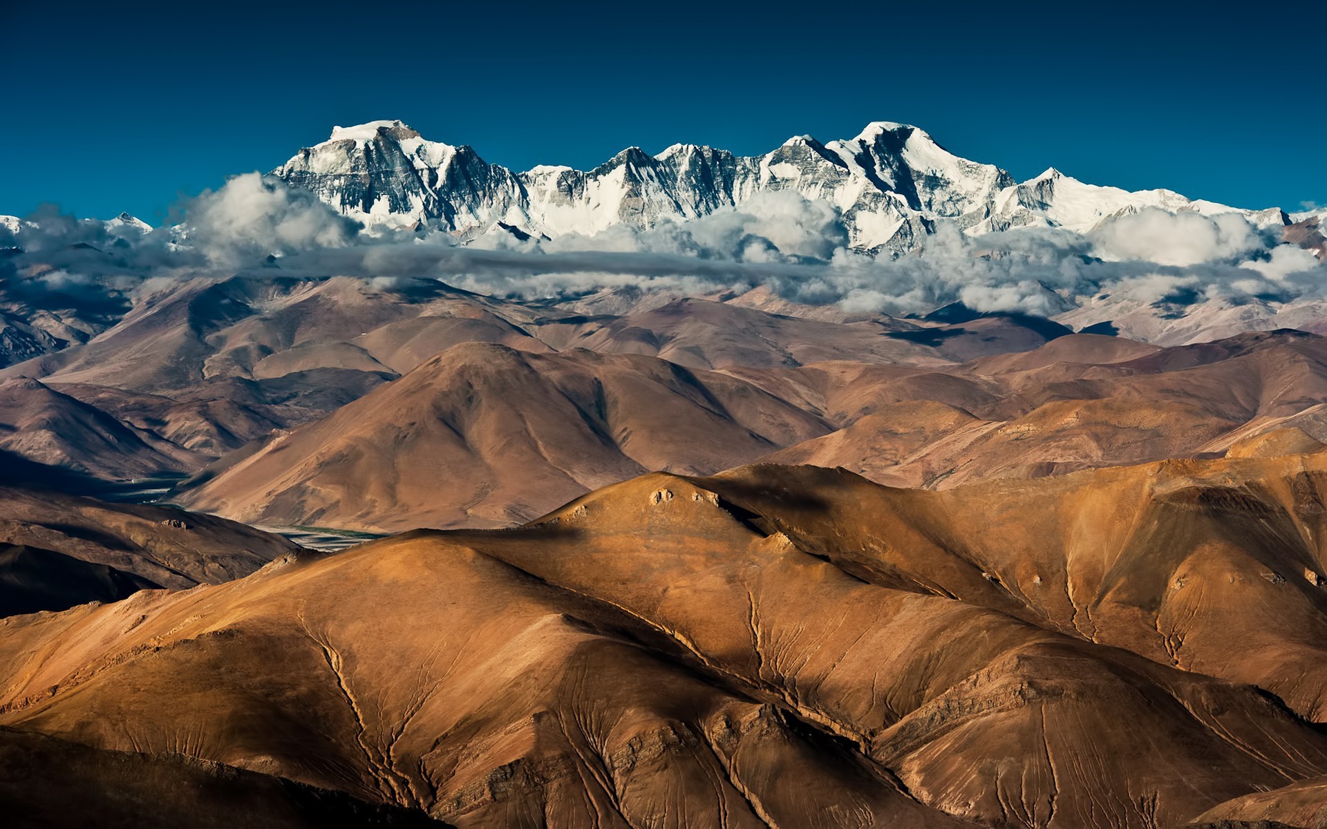 Покрытые снегом вершины высоких гор над плоскогорьем - 1920x1200