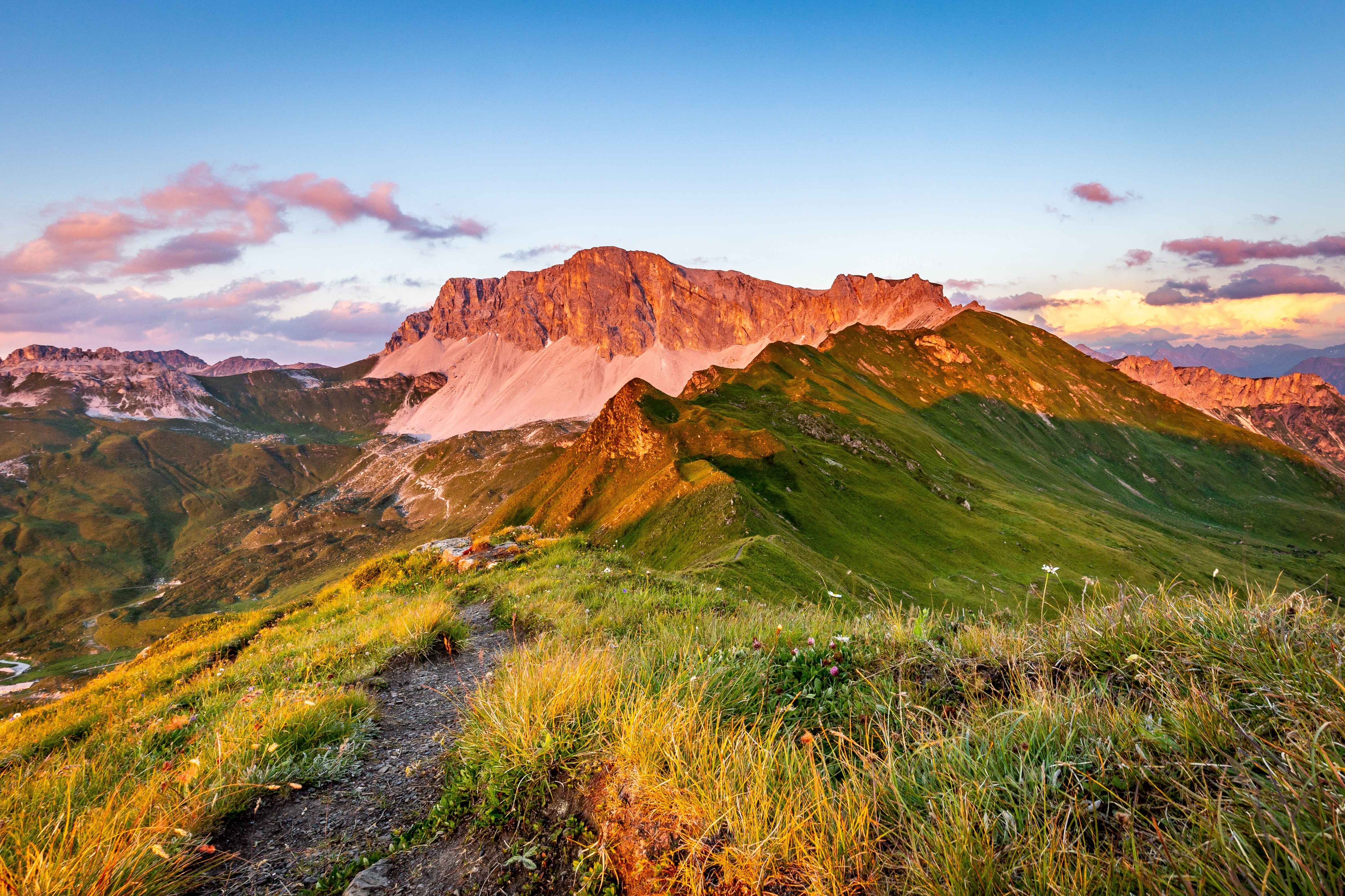 Солнце встает над зелеными горами - 4769x3179