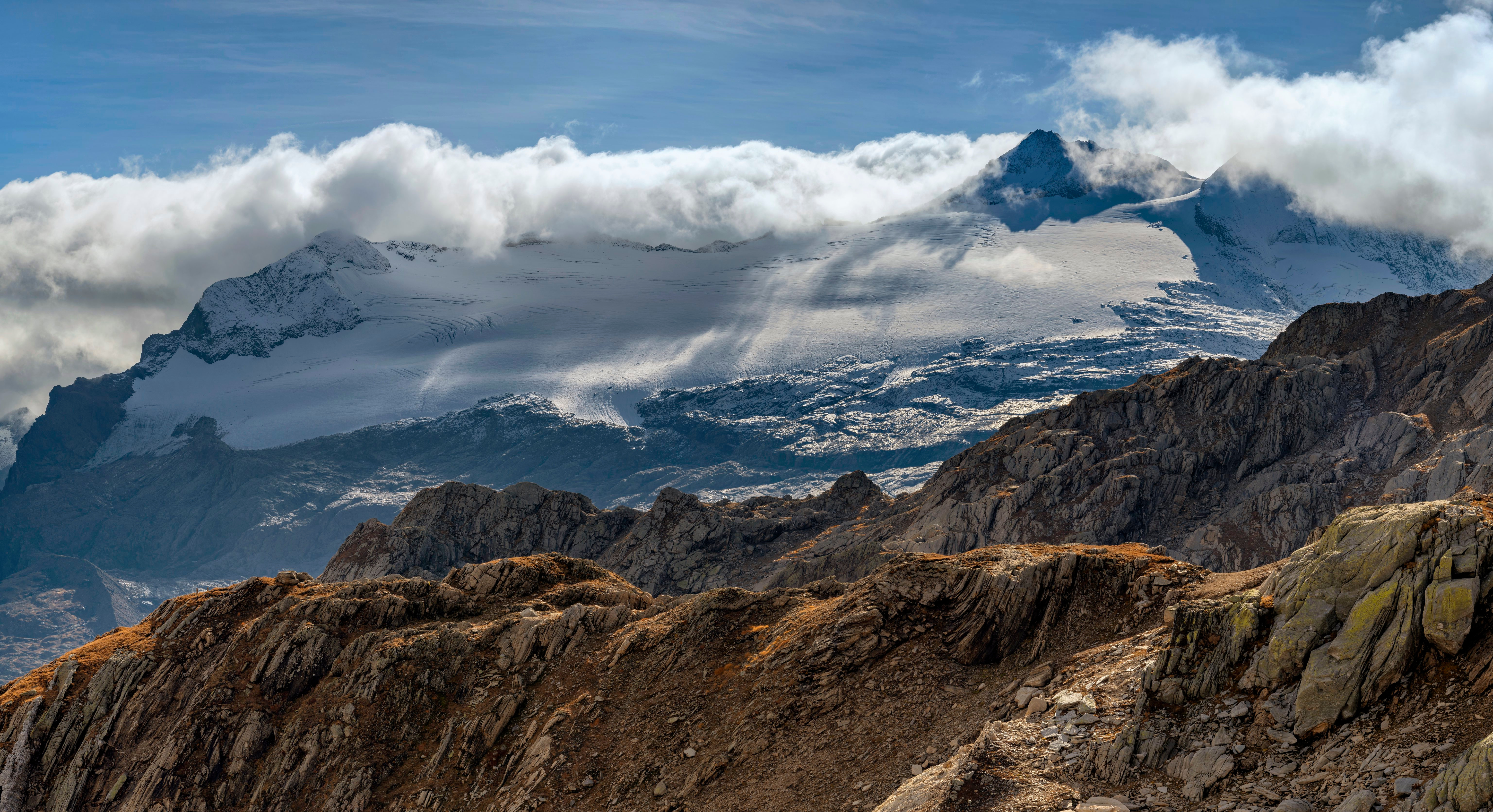 Густые белые облака над заснеженными Альпами - 6144x3343