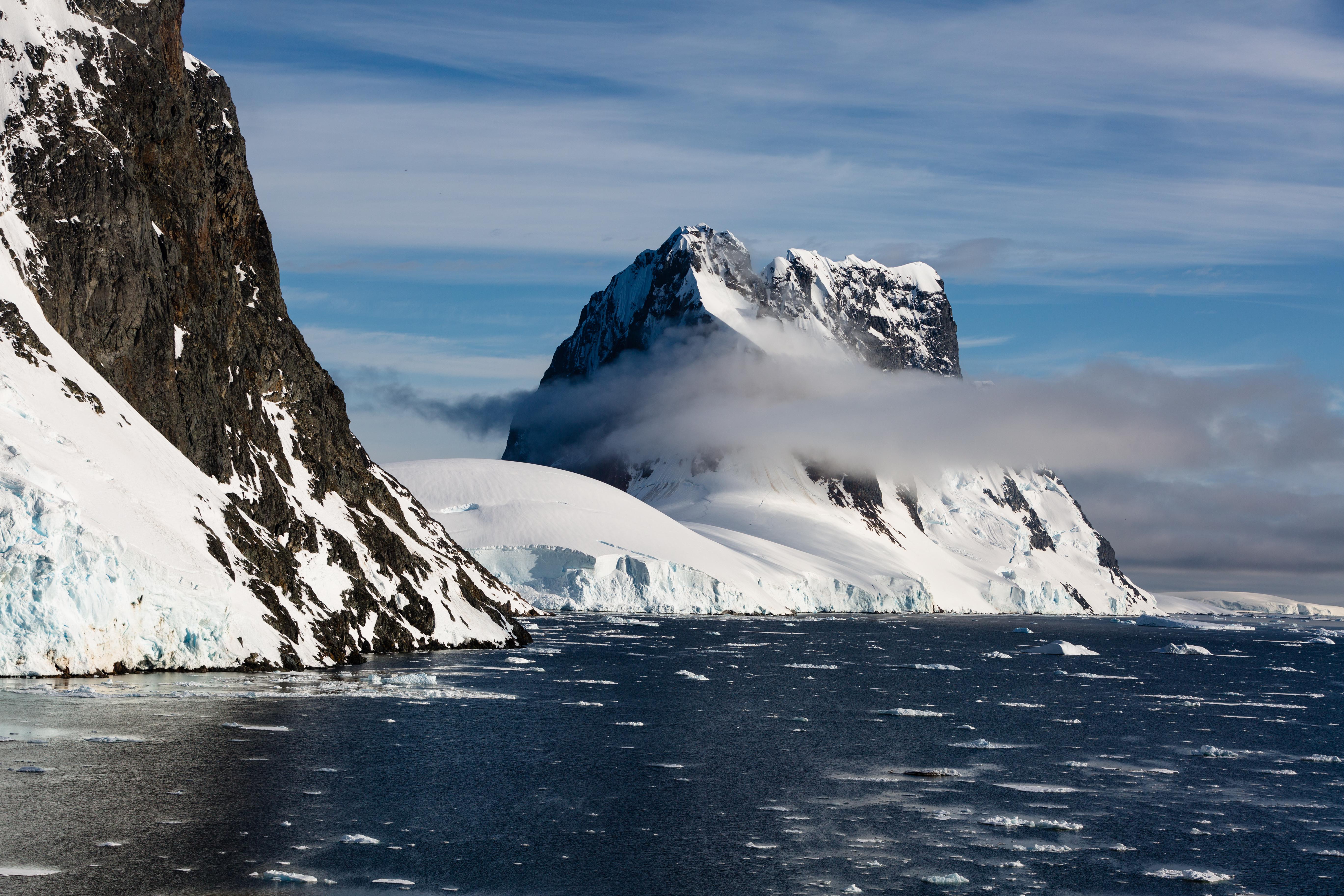 Заснеженные горы у покрытого льдом океана - 5477x3651