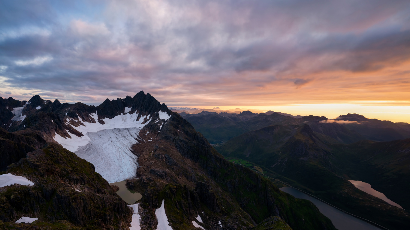 Низкие серые облака над горой Обои для рабочего стола 1366x768