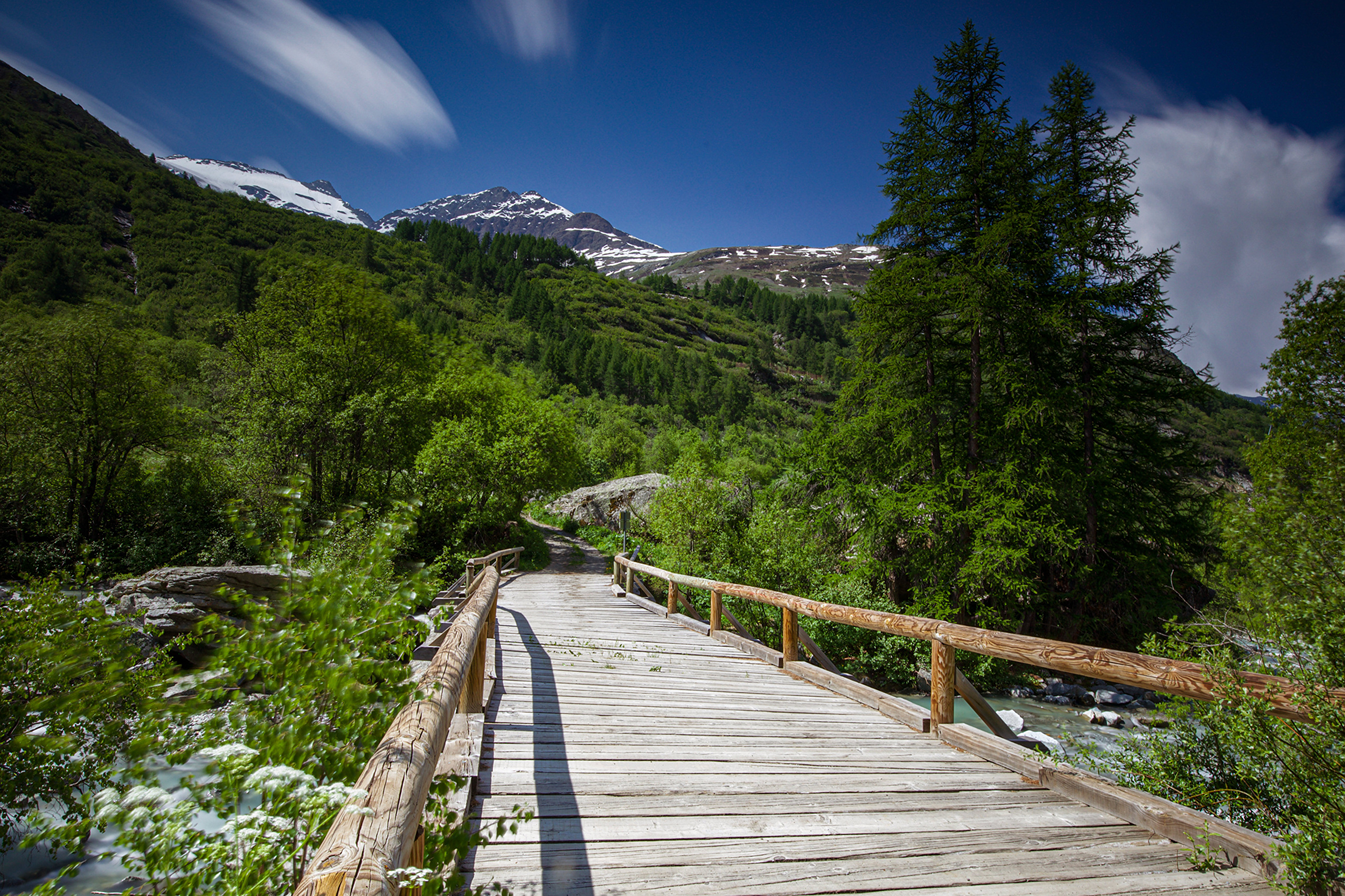 Большой деревянный мост у гор Обои для рабочего стола 1440x900