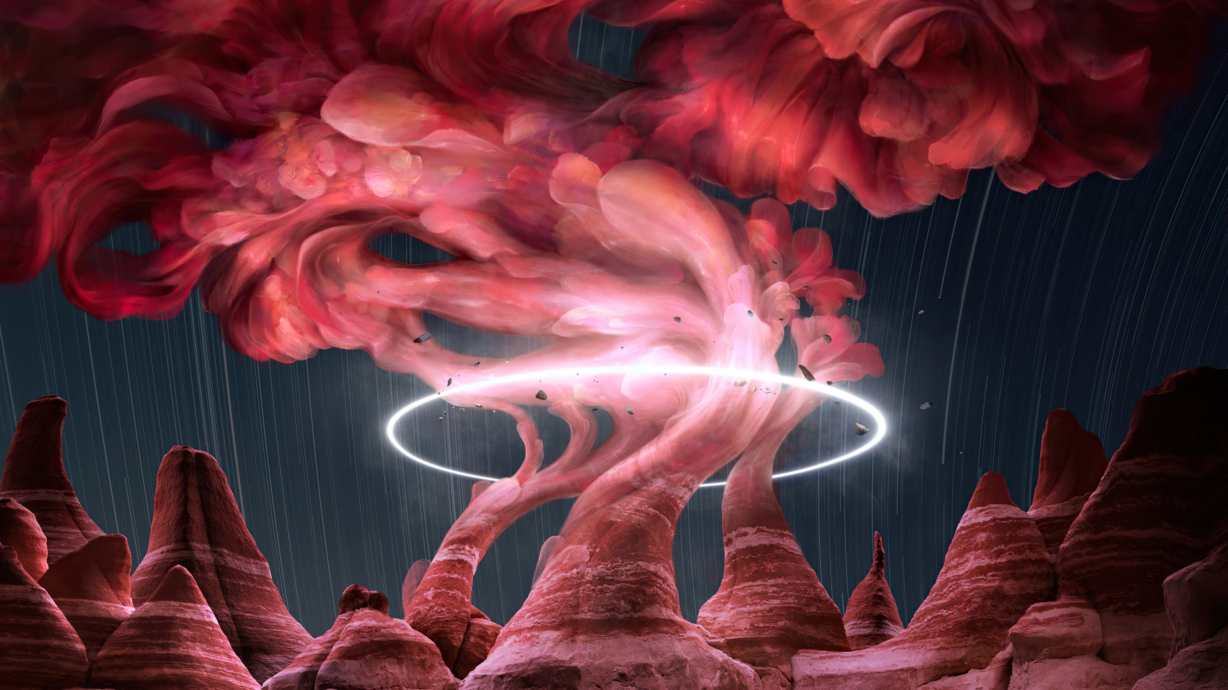 Красный дым над скалами - 4000x2250