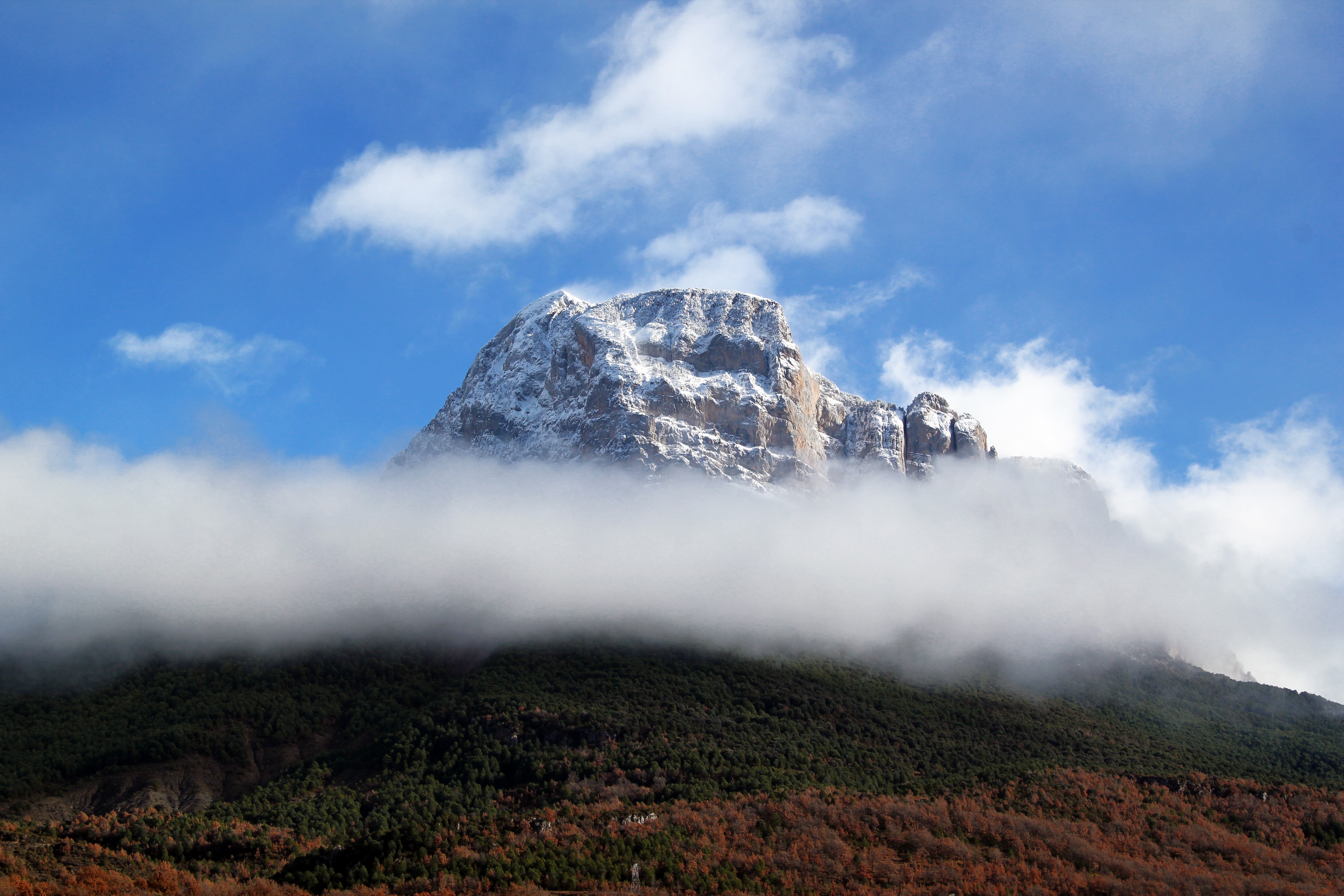 Заснеженная горная вершина в белых облаках - 5184x3456