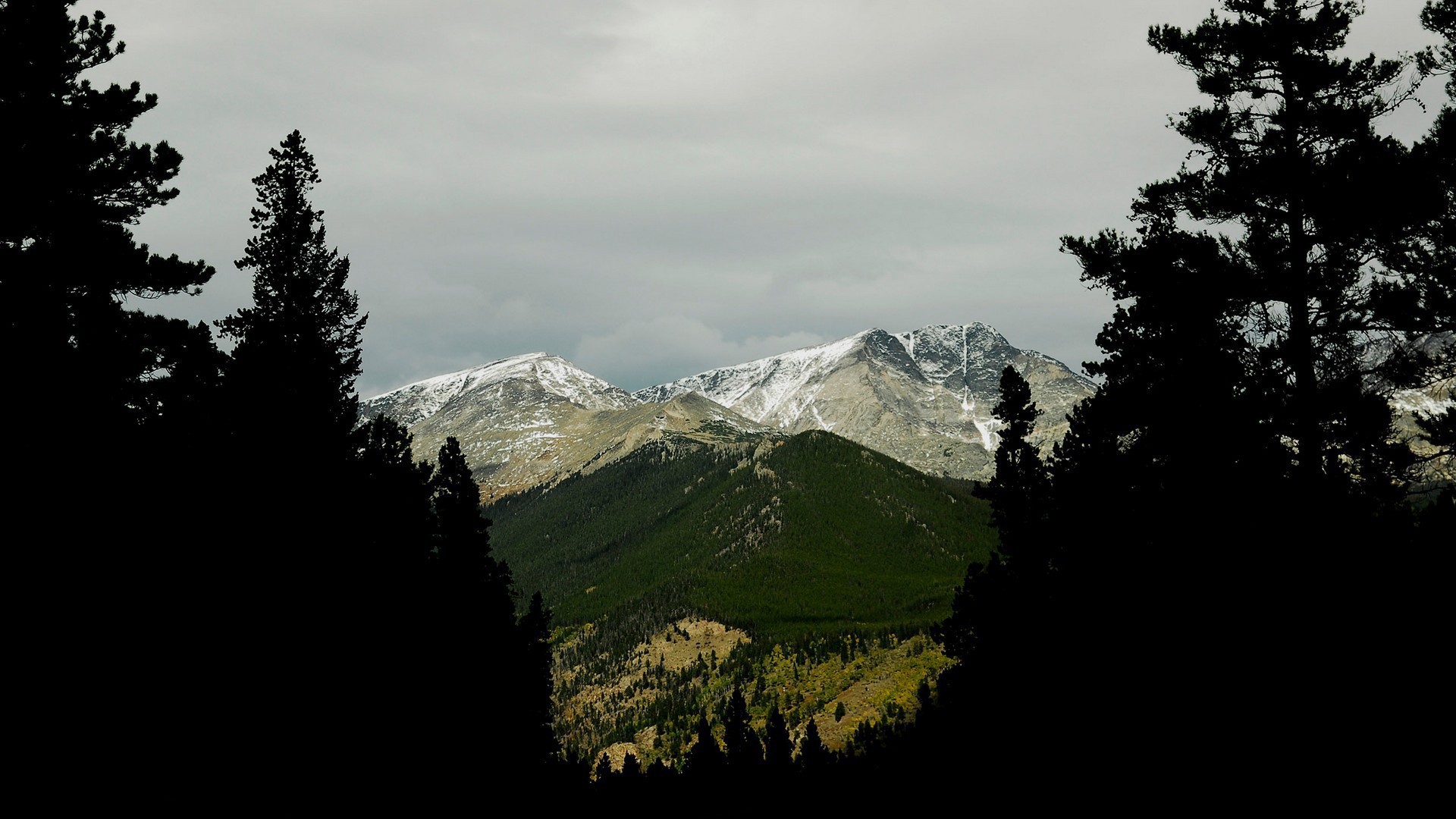 Фото гор среди деревьев - 1920x1080