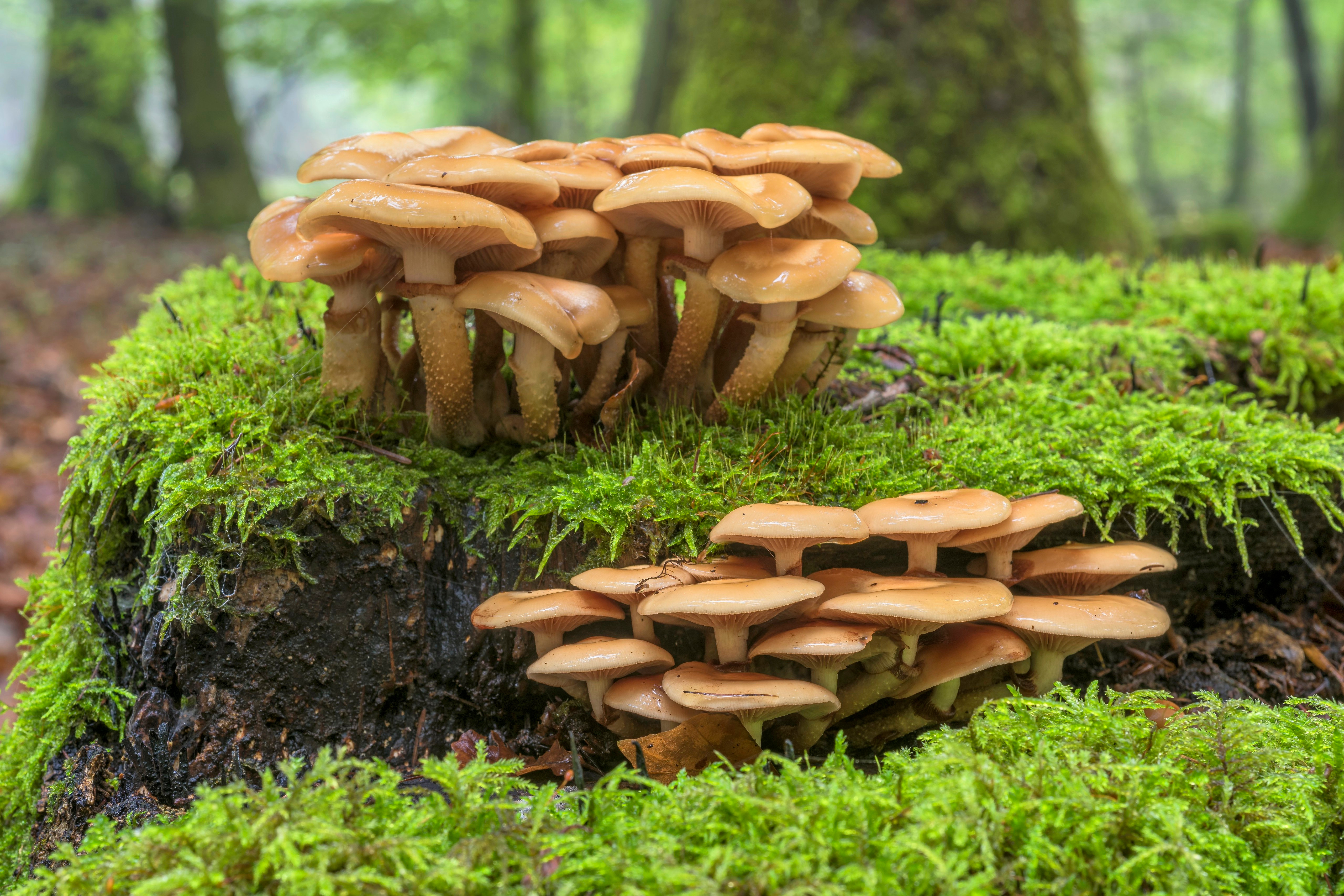 Лесные грибы на покрытой мхом земле - 5120x3413
