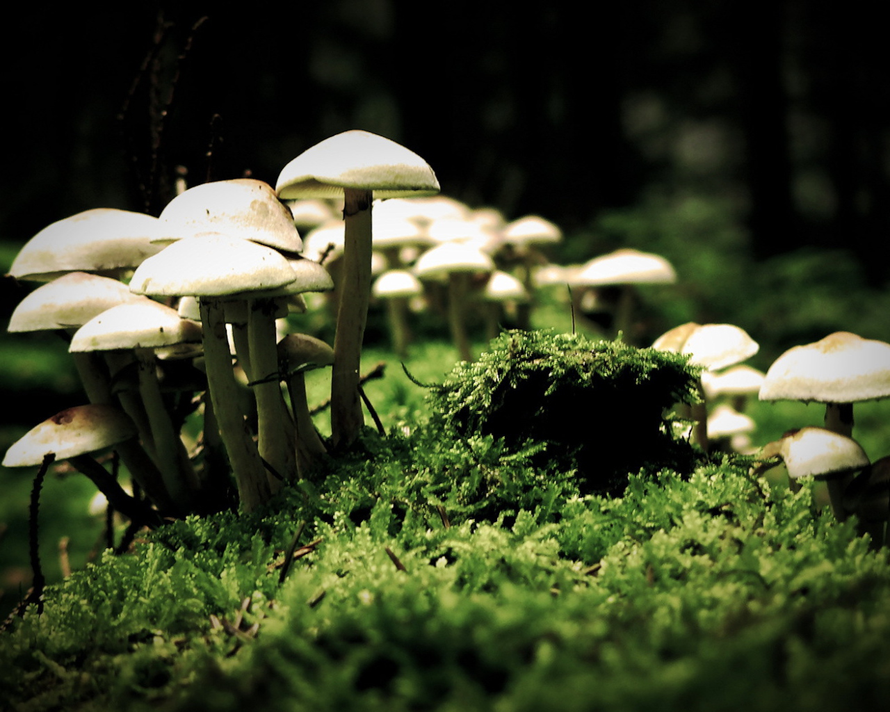 Семья грибов на мху Обои для рабочего стола 1280x1024