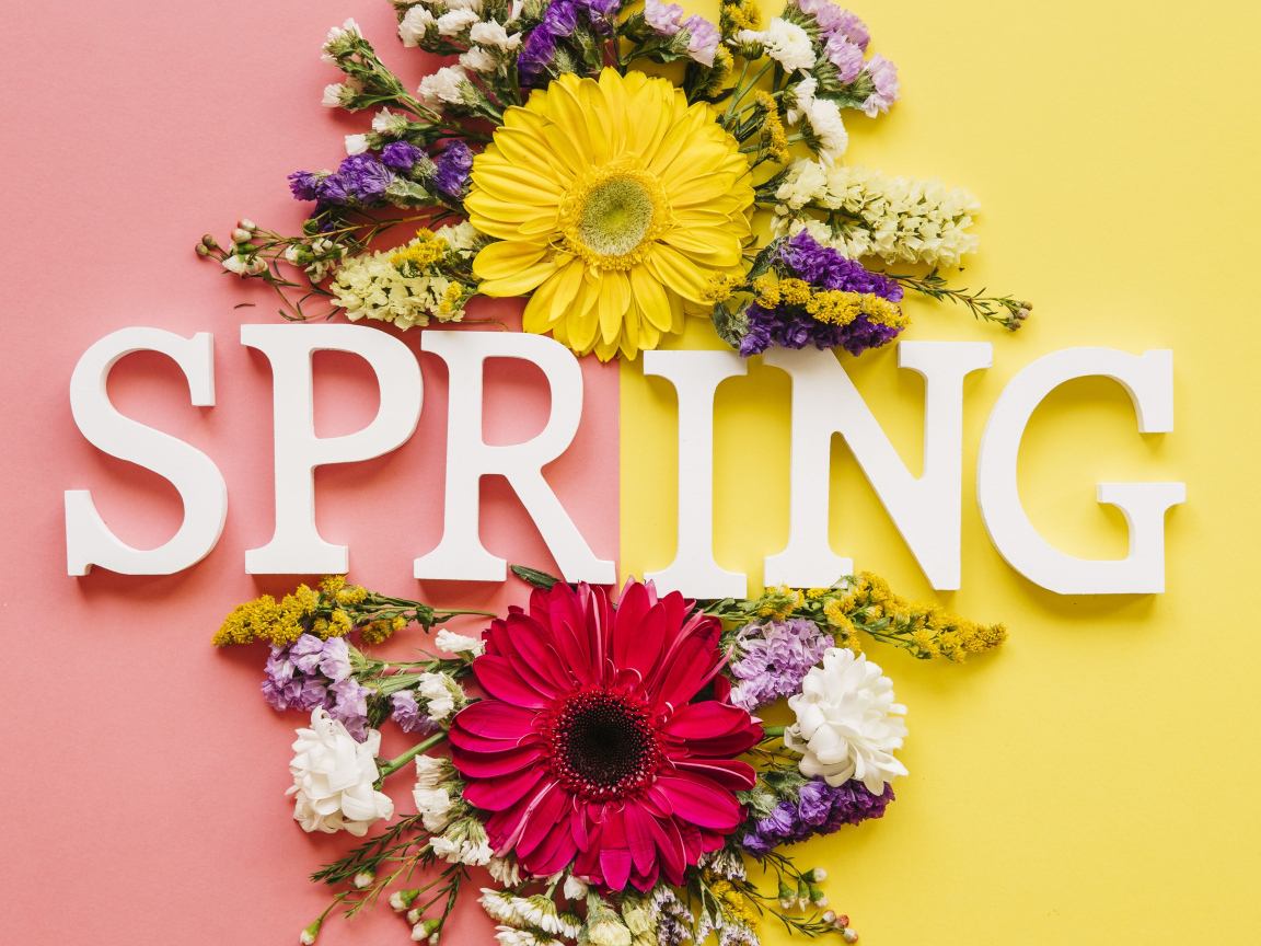 Надпись Весна с цветами Обои для рабочего стола 1152x864