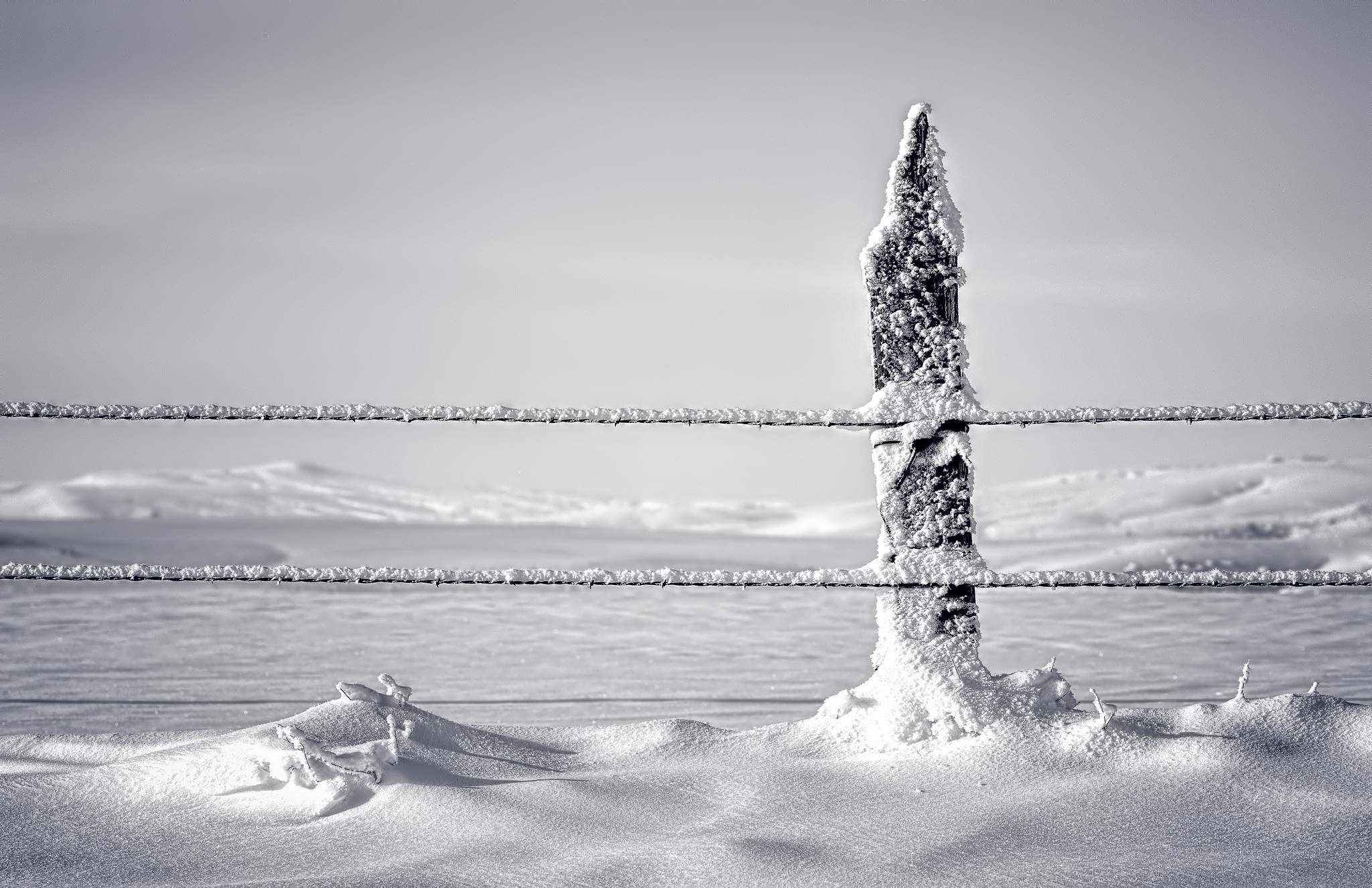 Снег налип на канатах ограждения - 2048x1325