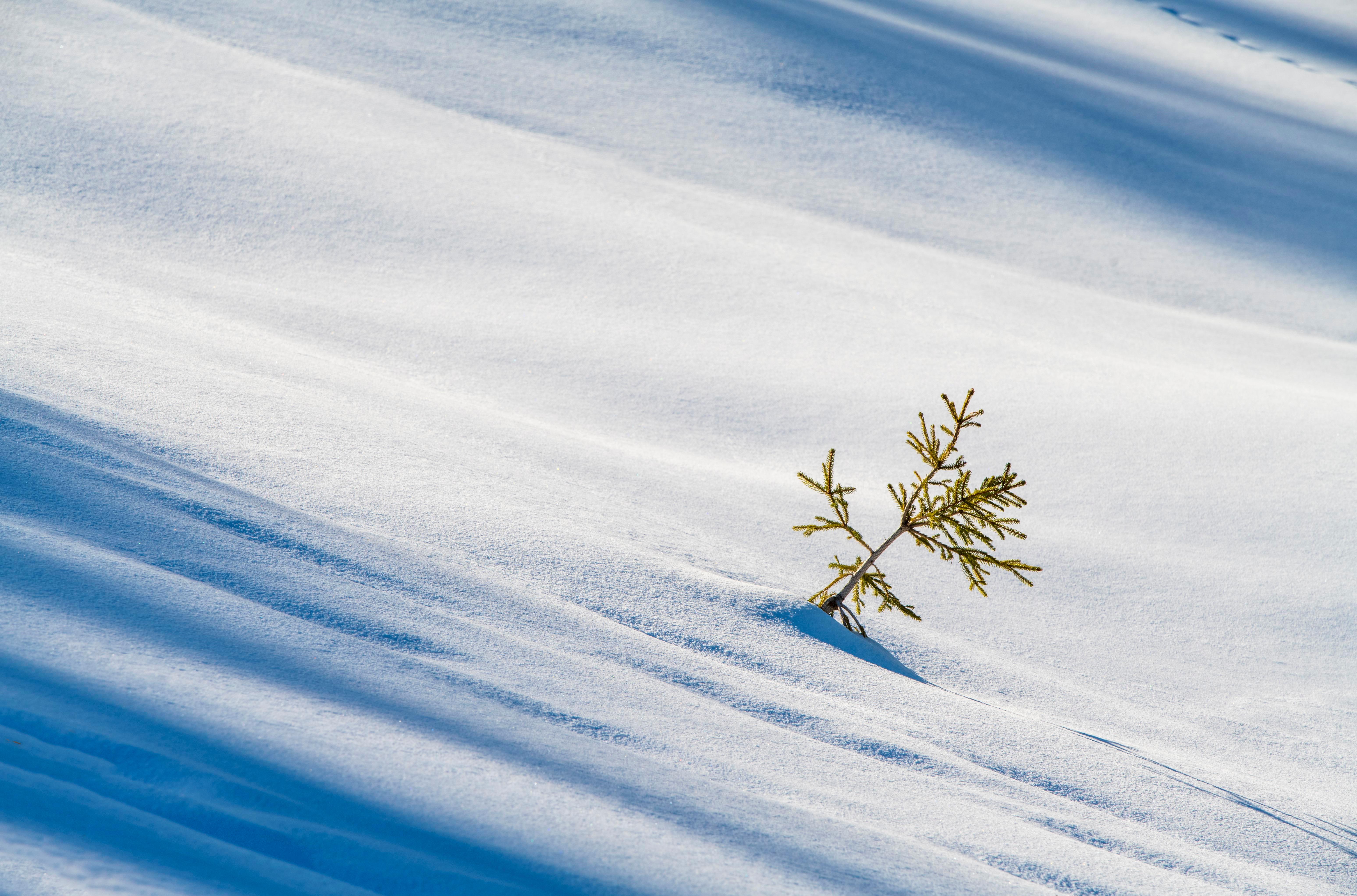 Ветка ели на ровном холодном снегу - 6192x4088