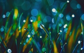 Зеленая трава в каплях росы крупным планом