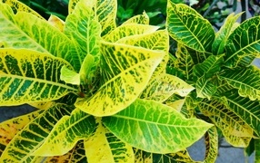Зеленые листья комнатного растения Кротон