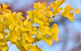 Желтые листья гинкго на ветке