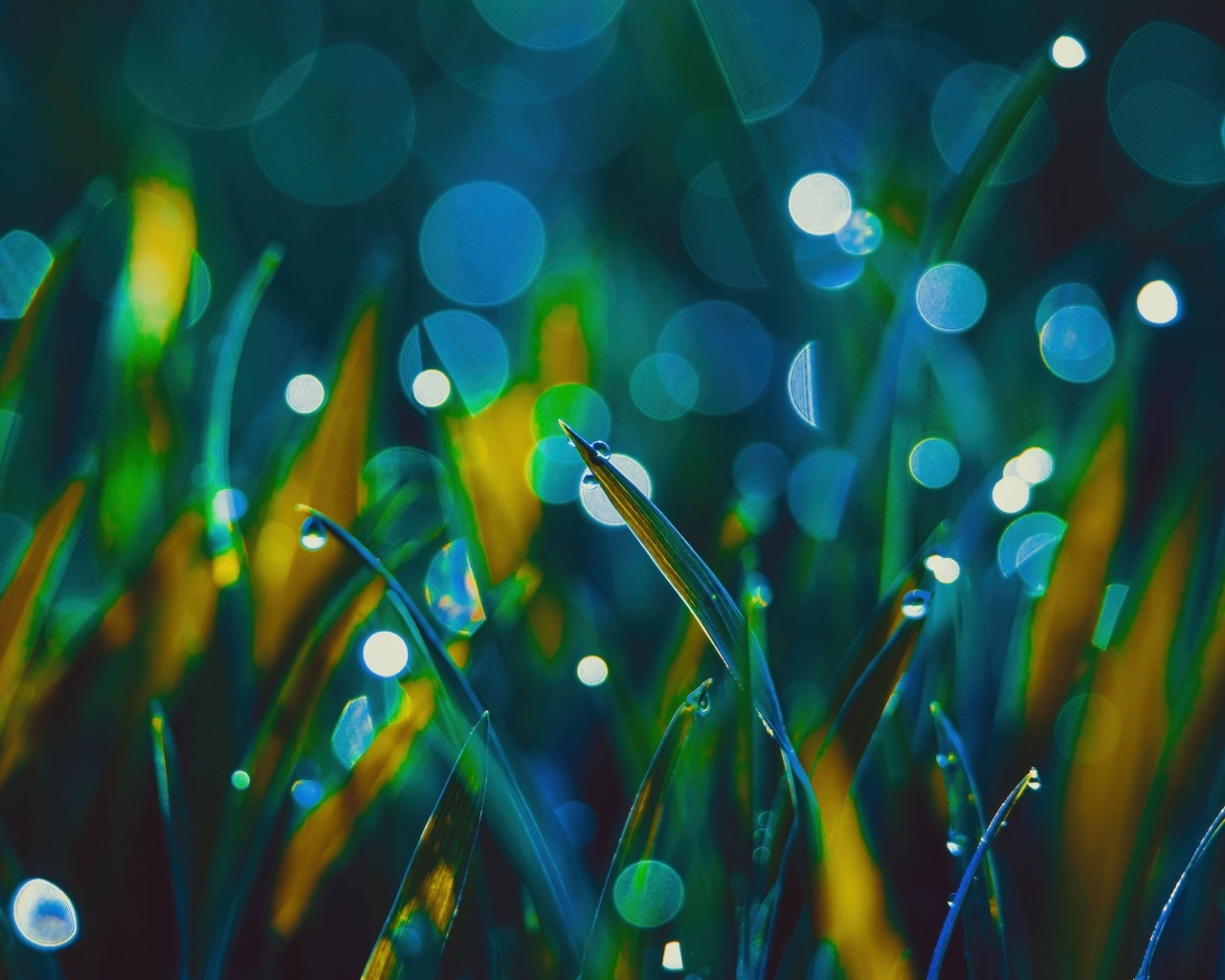 Зеленая трава в каплях росы крупным планом Обои для рабочего стола 1280x1024