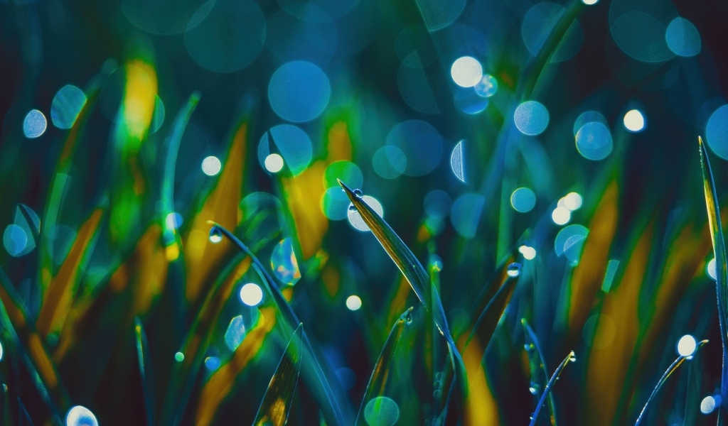 Зеленая трава в каплях росы крупным планом Обои для рабочего стола 1024x600