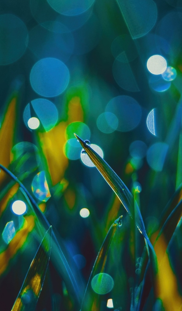 Зеленая трава в каплях росы крупным планом Обои для рабочего стола 600x1024