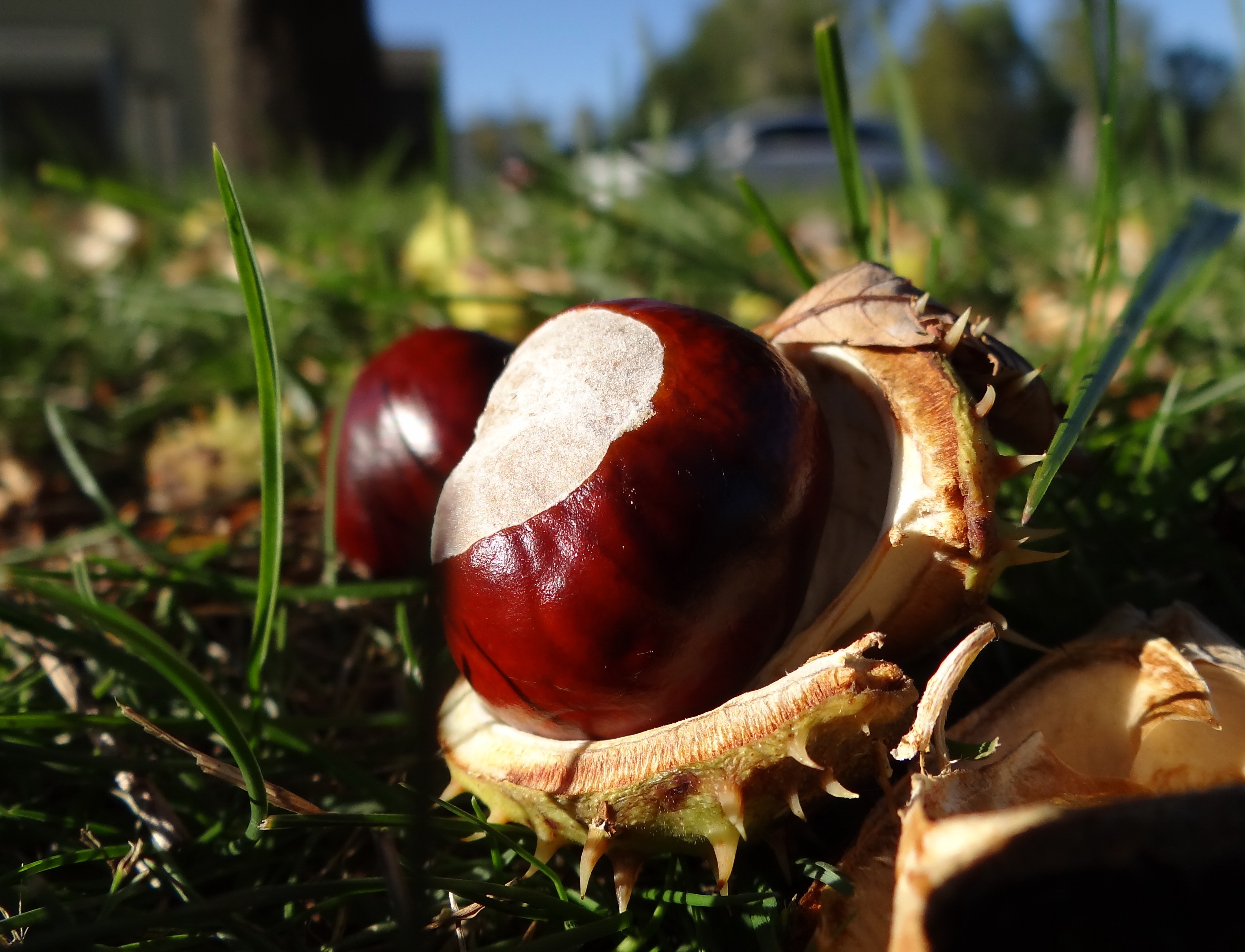 Опавшие каштаны лежат на траве - 4067x3110