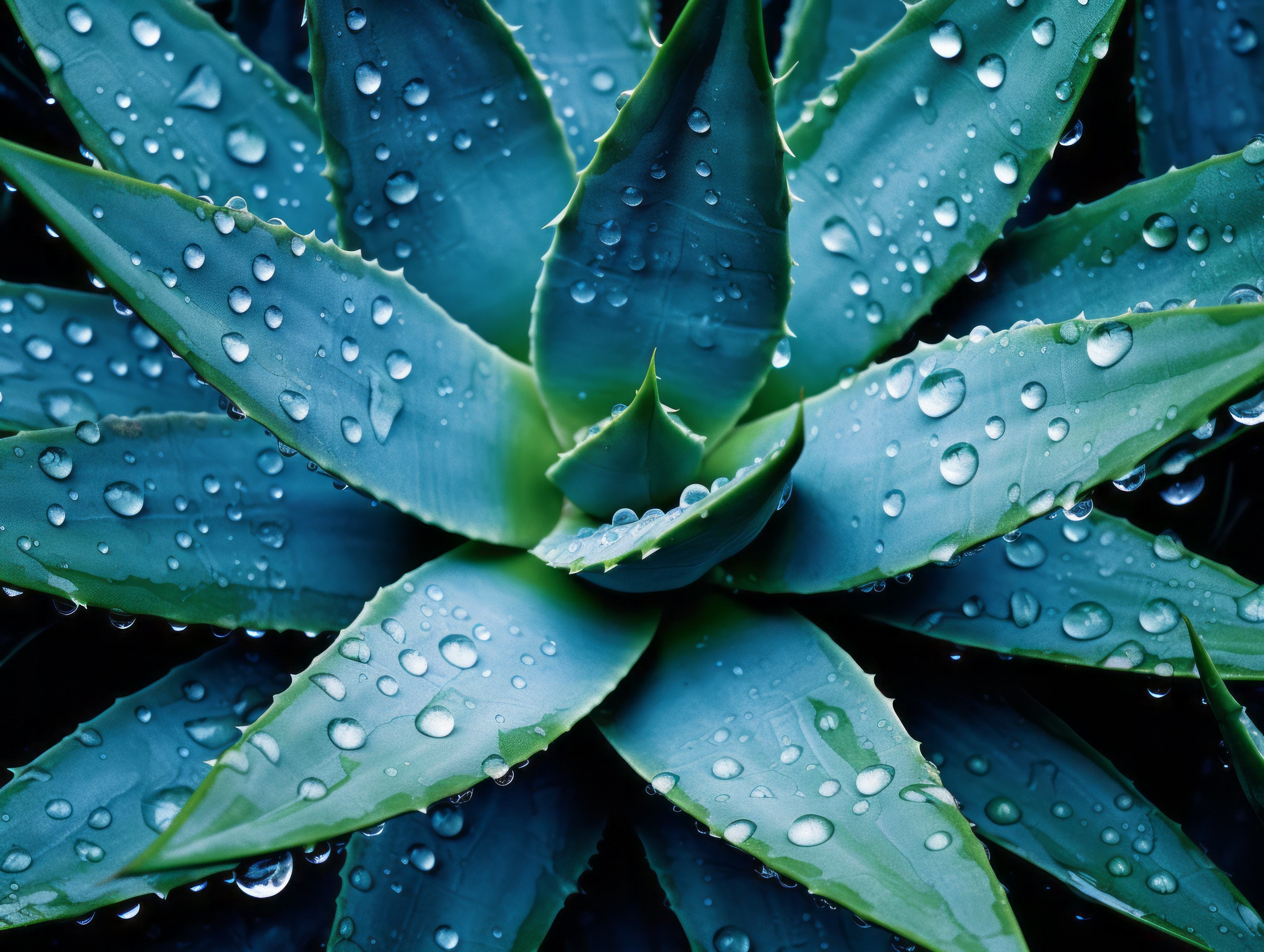 Большое зеленое алоэ в каплях воды - 3992x3007