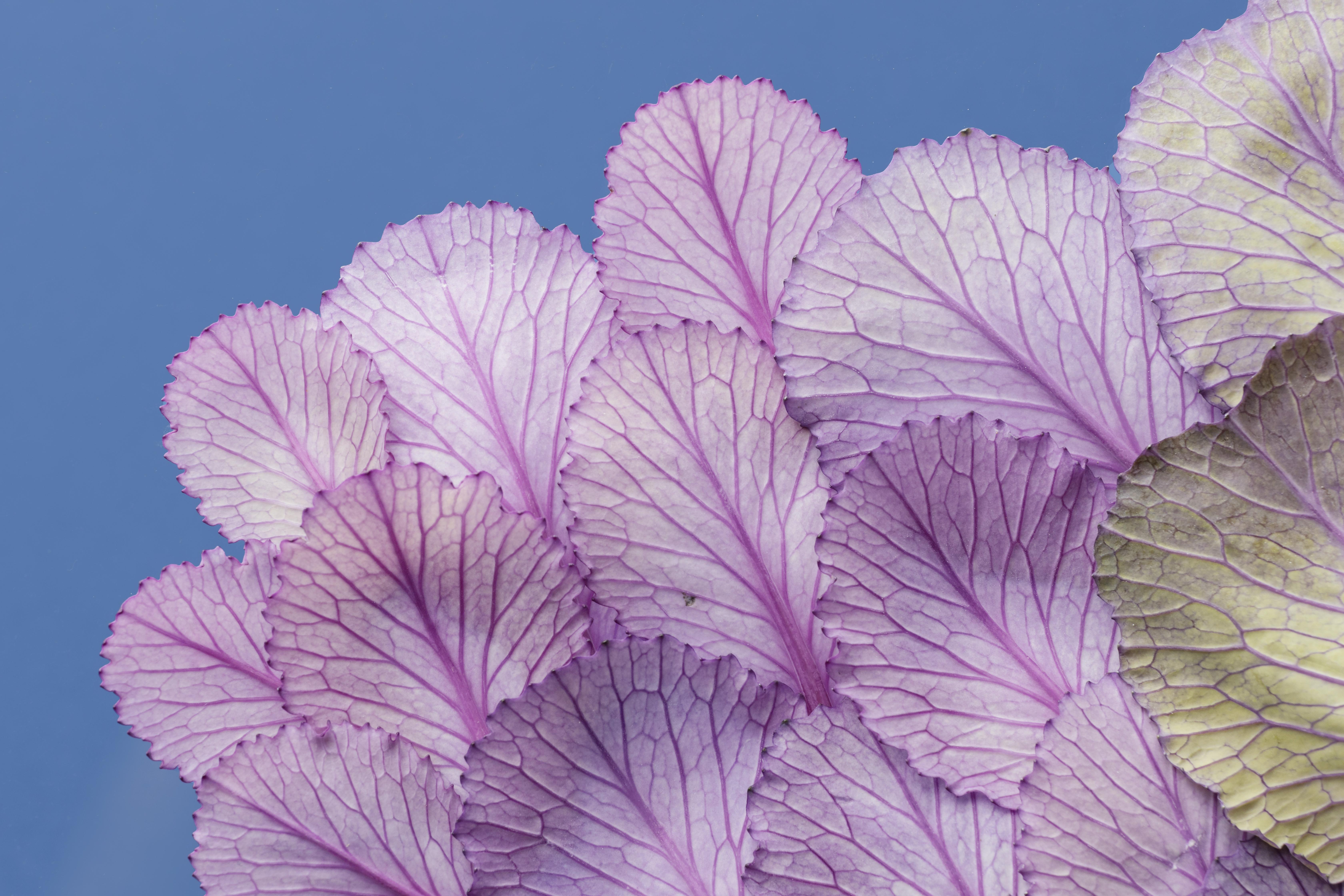 Листья капусты на синем фоне - 6720x4480