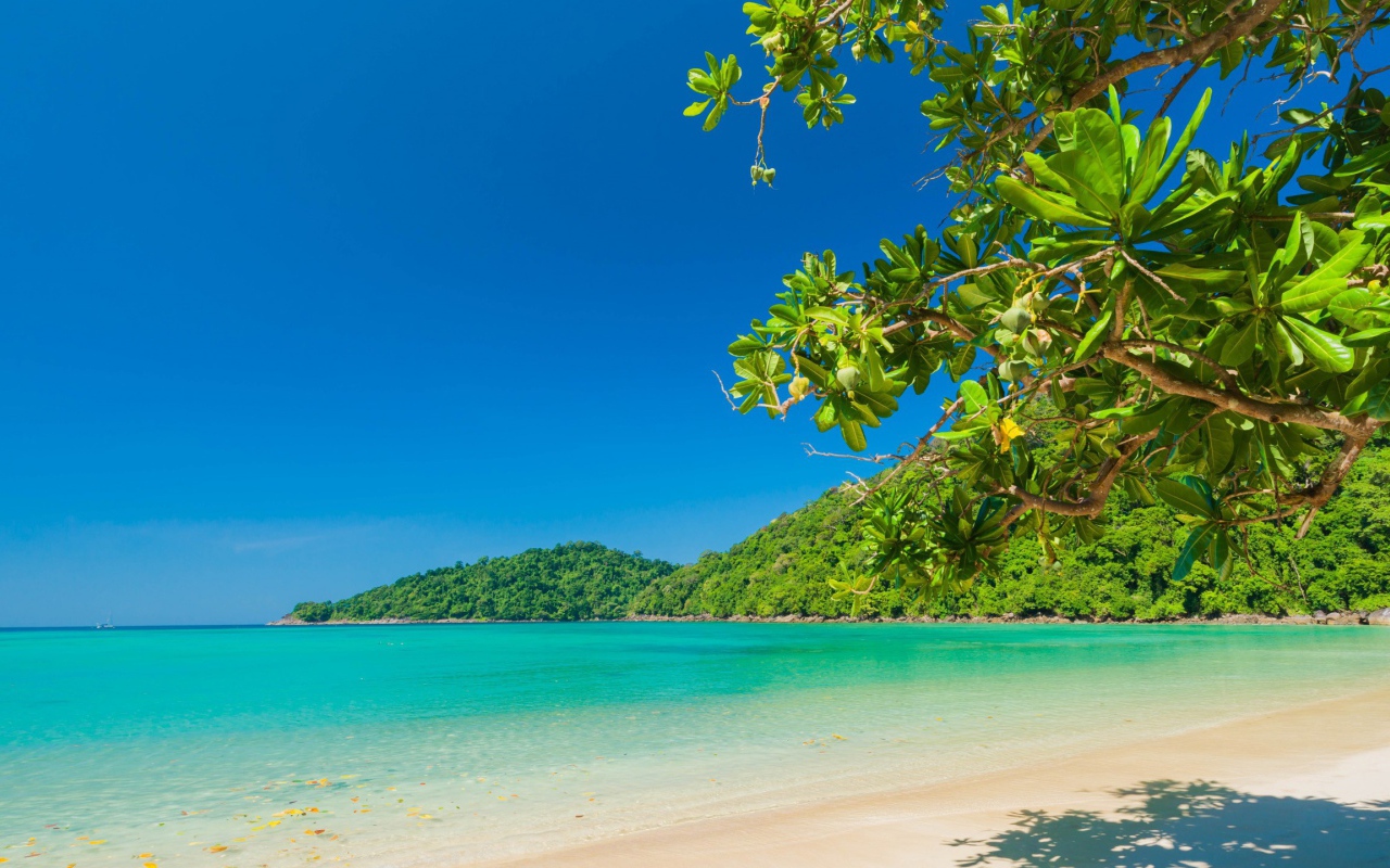 Голубая вода океана на тропическом пляже с белым песком Обои для рабочего стола 1280x800