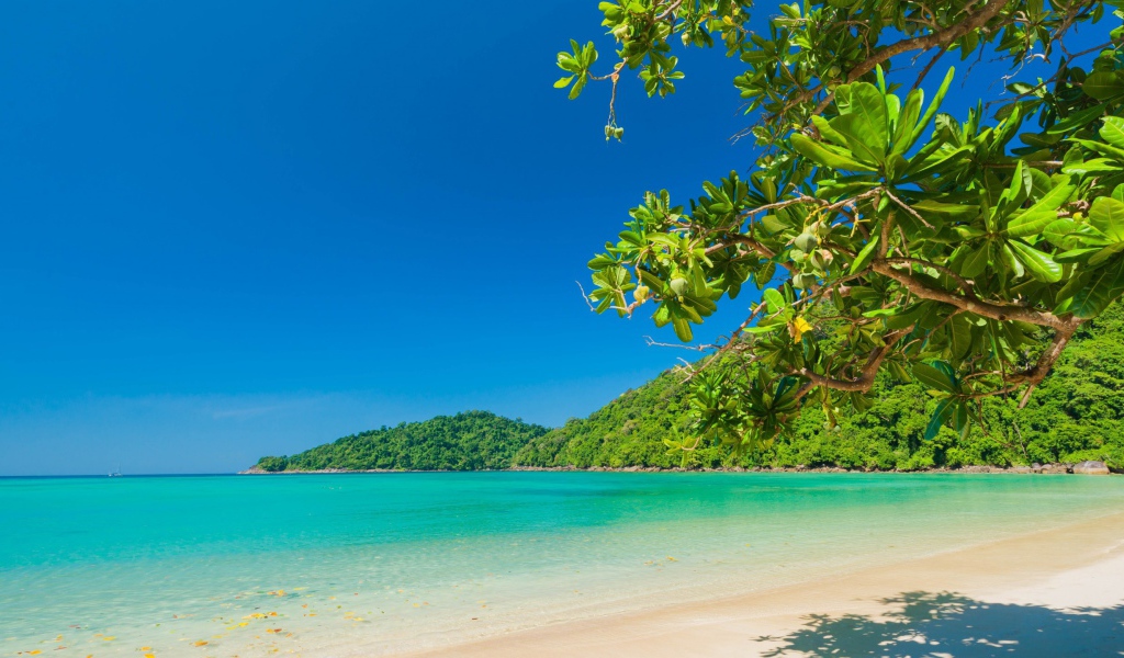 Голубая вода океана на тропическом пляже с белым песком Обои для рабочего стола 1024x600