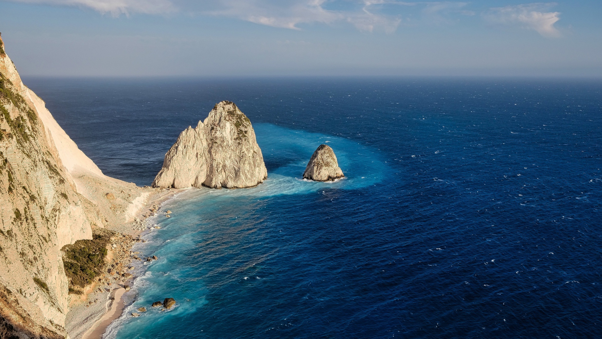 Обломки скалы в бескрайнем море Обои для рабочего стола 1920x1080