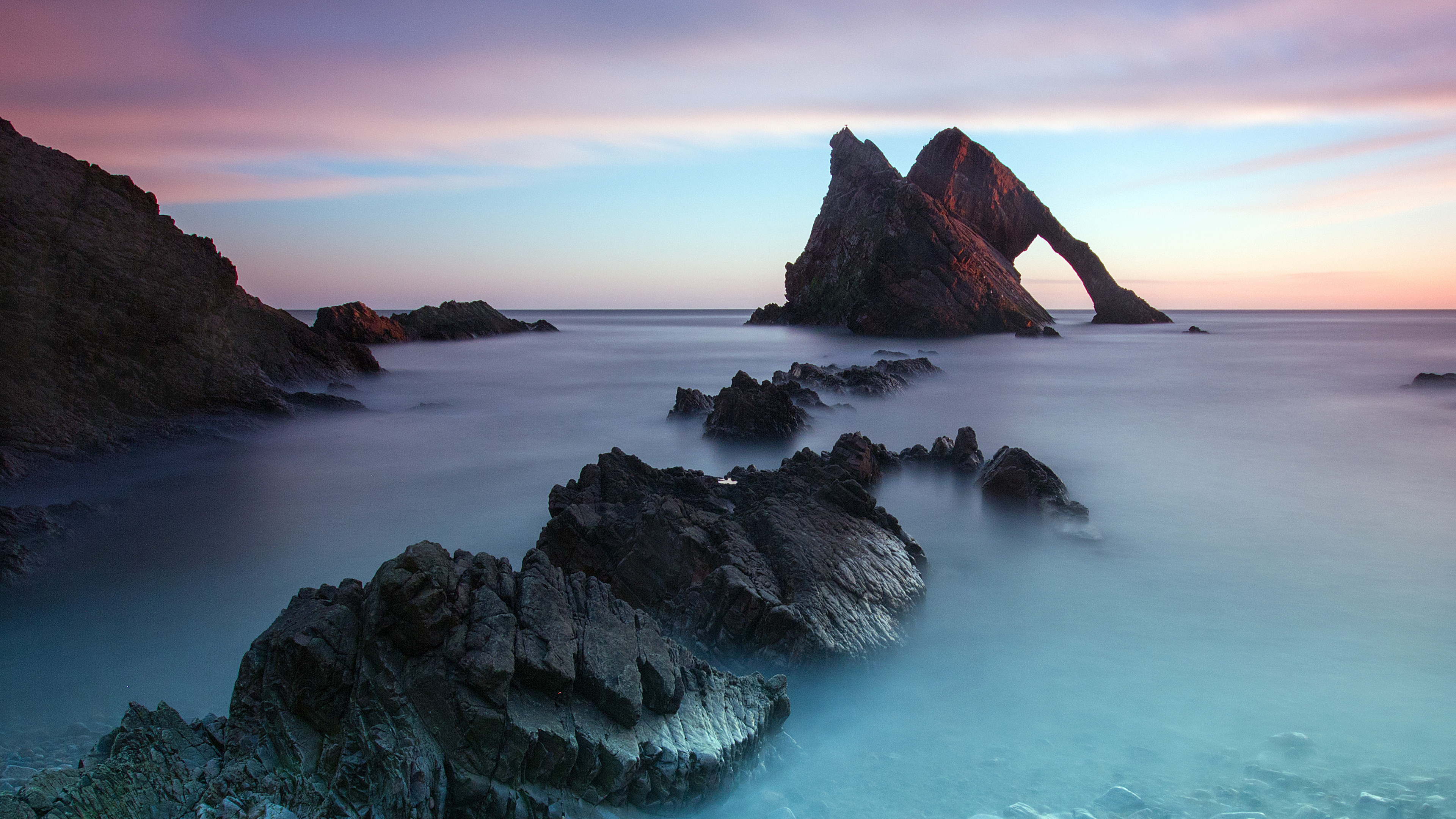 Большие камни в холодной морской воде - 3840x2160