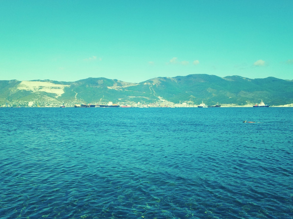 Синее море и зеленые горы Обои для рабочего стола 1024x768