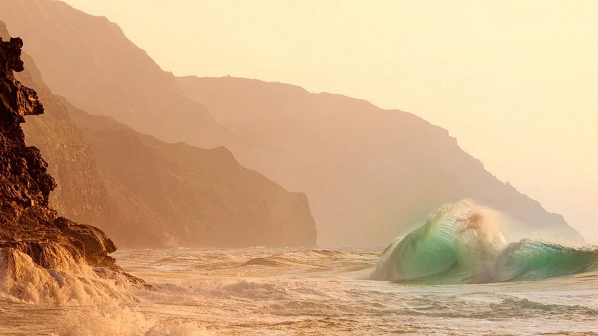Обои: Волны прибоя у скал затерянного острова