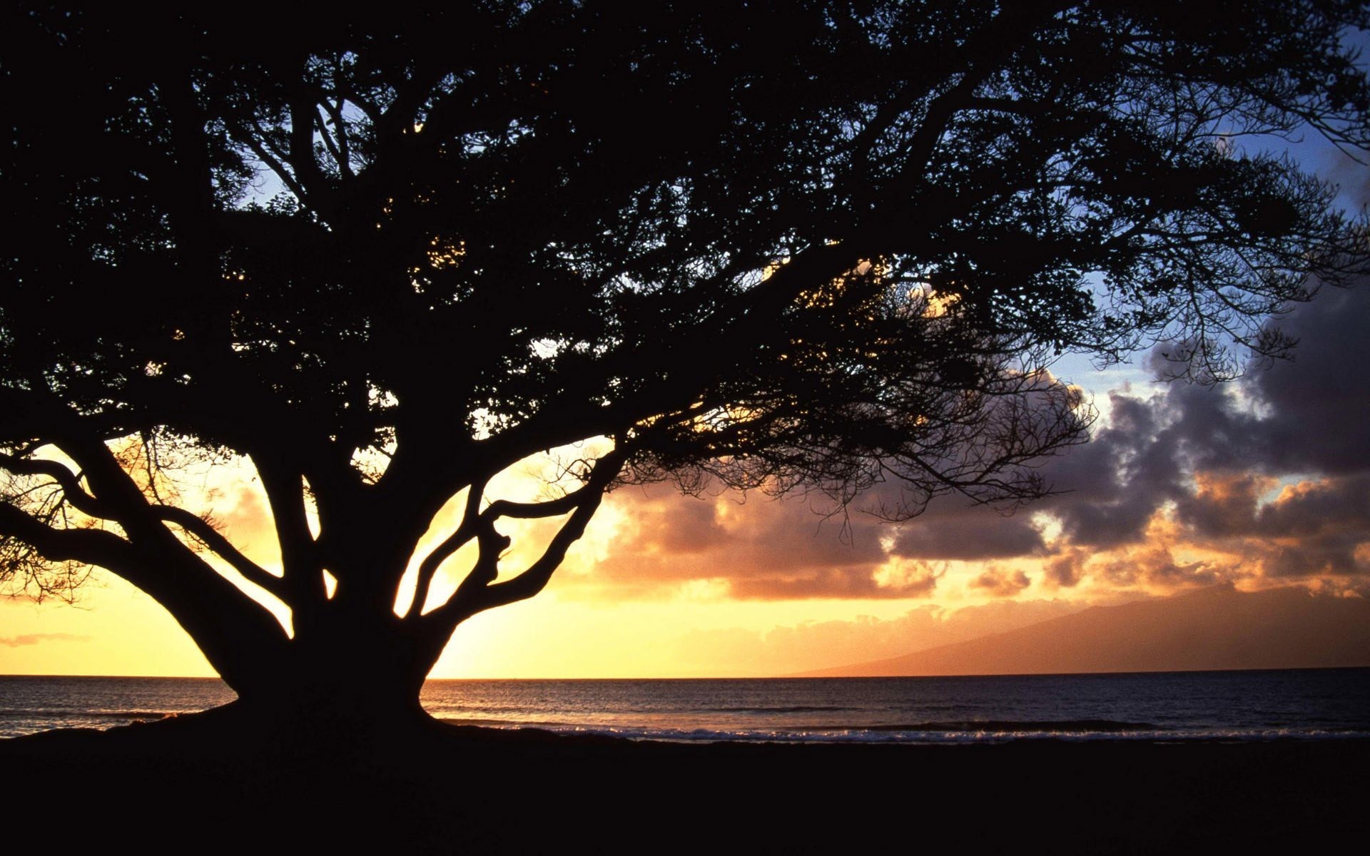 Дерево раскинуло ветви на фоне заката - 1920x1200