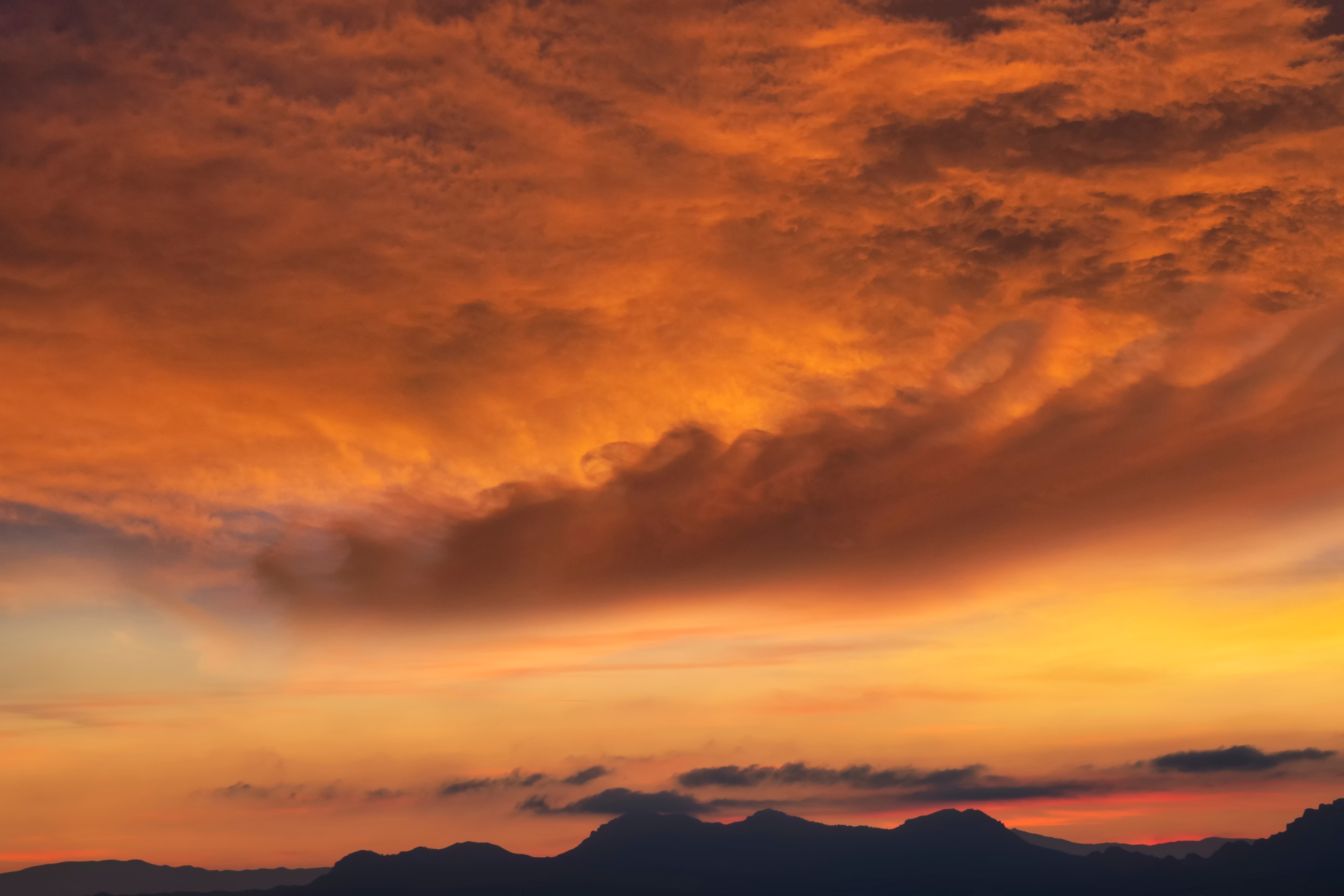 Густые облака оранжевого цвета на закате - 5568x3712