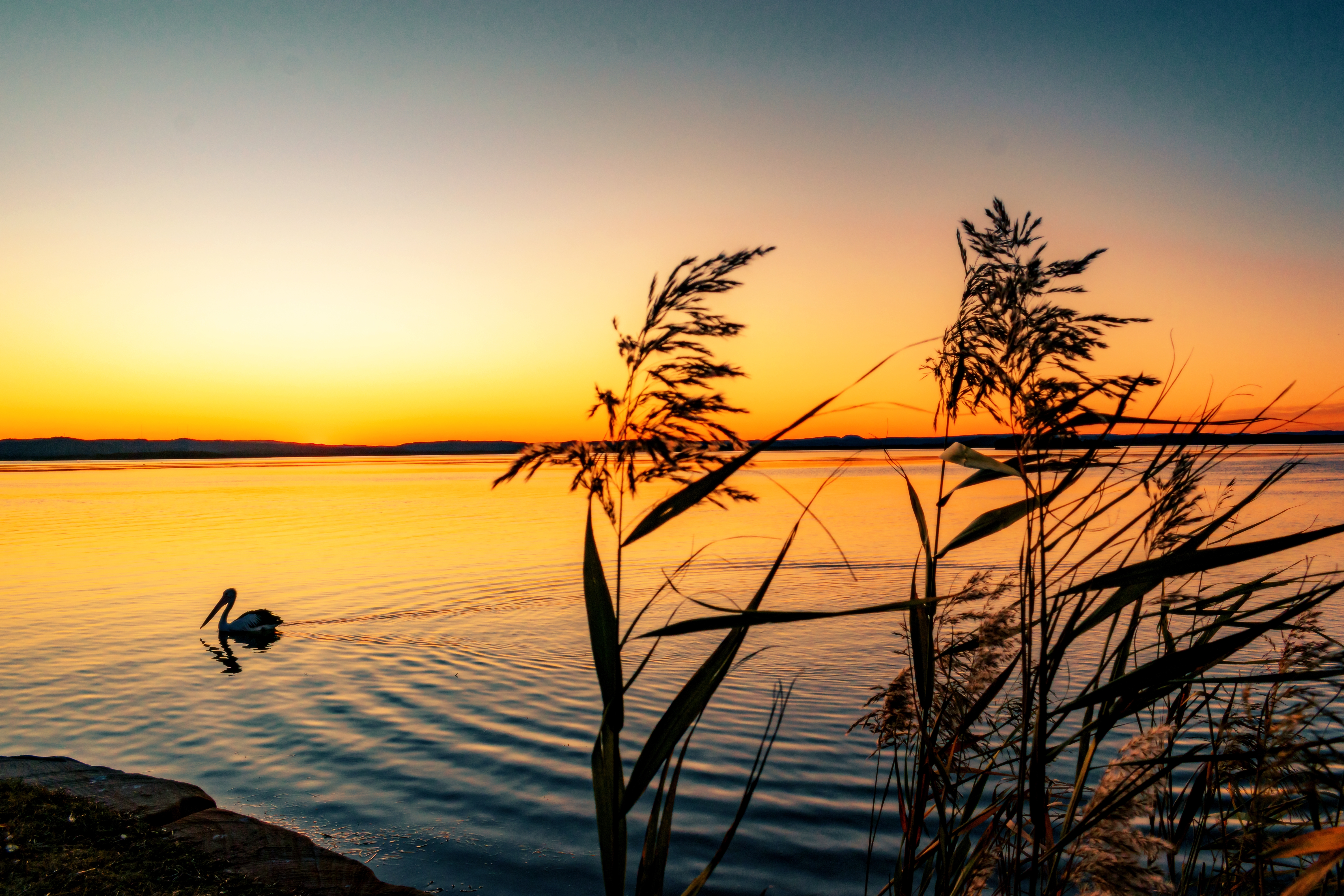 Тихий закат солнца над озером - 6000x4000