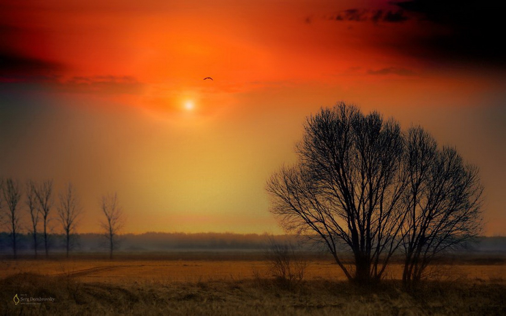 Красочный закат над полем - 1680x1050