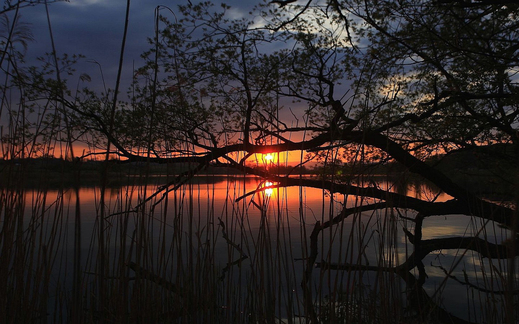 Закат на тихом озере - 1680x1050