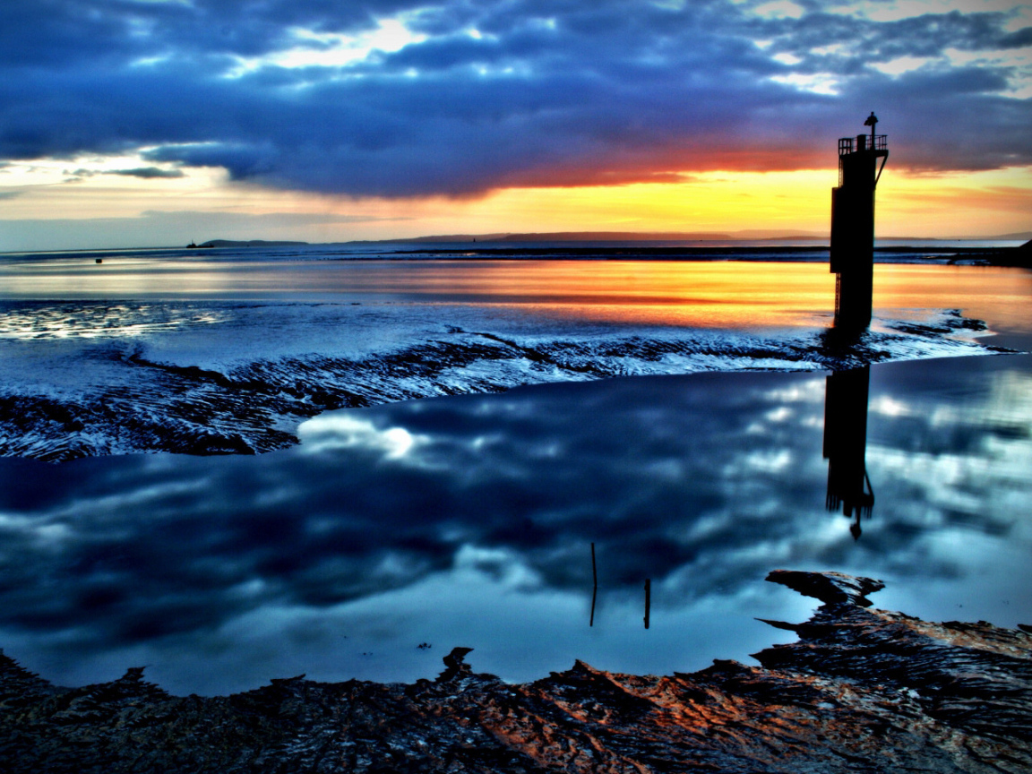 Желтый закат на синих облаках - 1280x1024