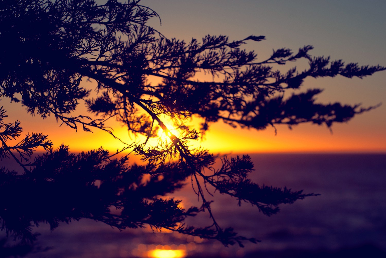 Закат сквозь ветки дерева - 1500x1004
