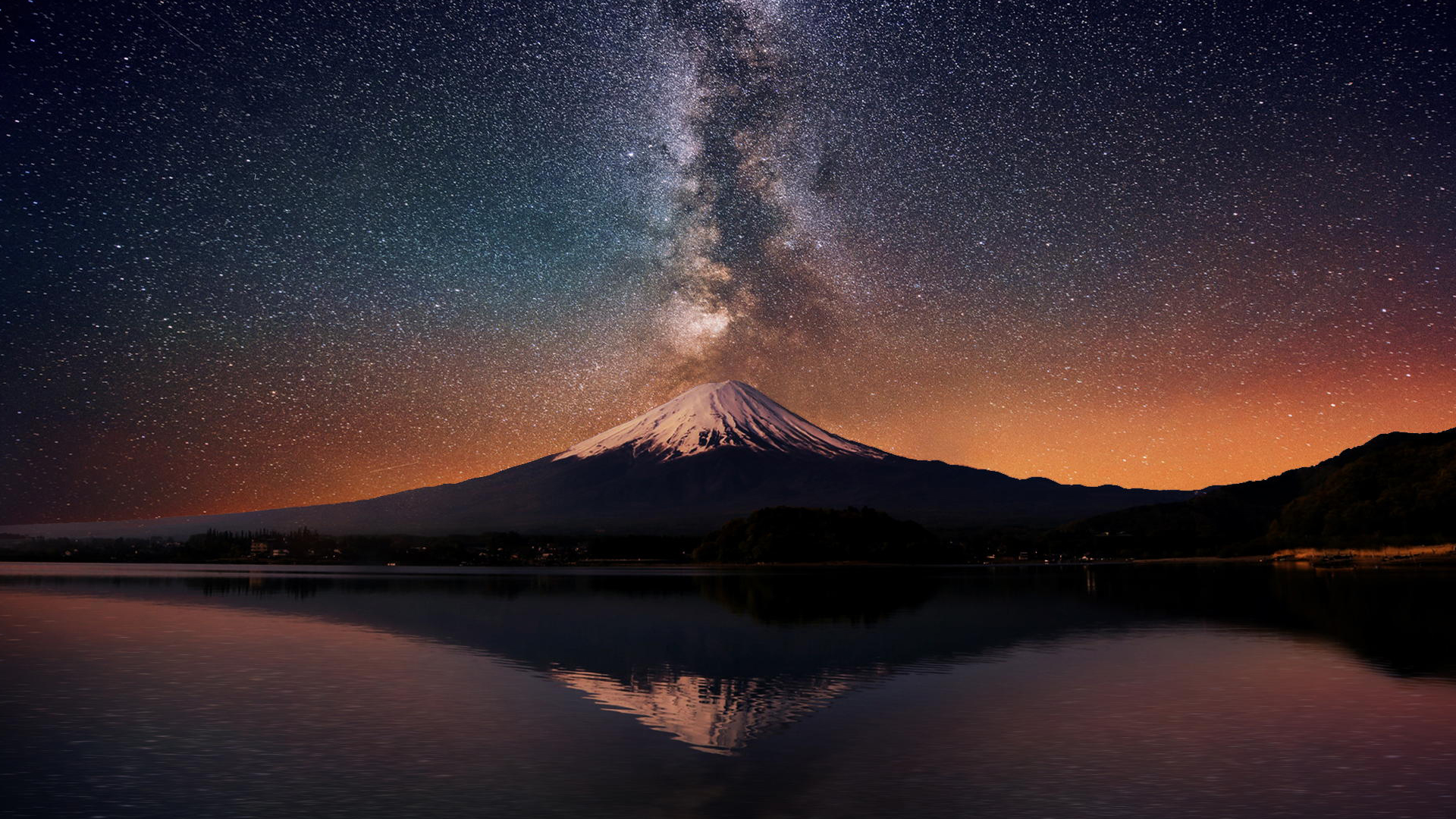 Заснеженная вершина вулкана под звездным небом - 1920x1080