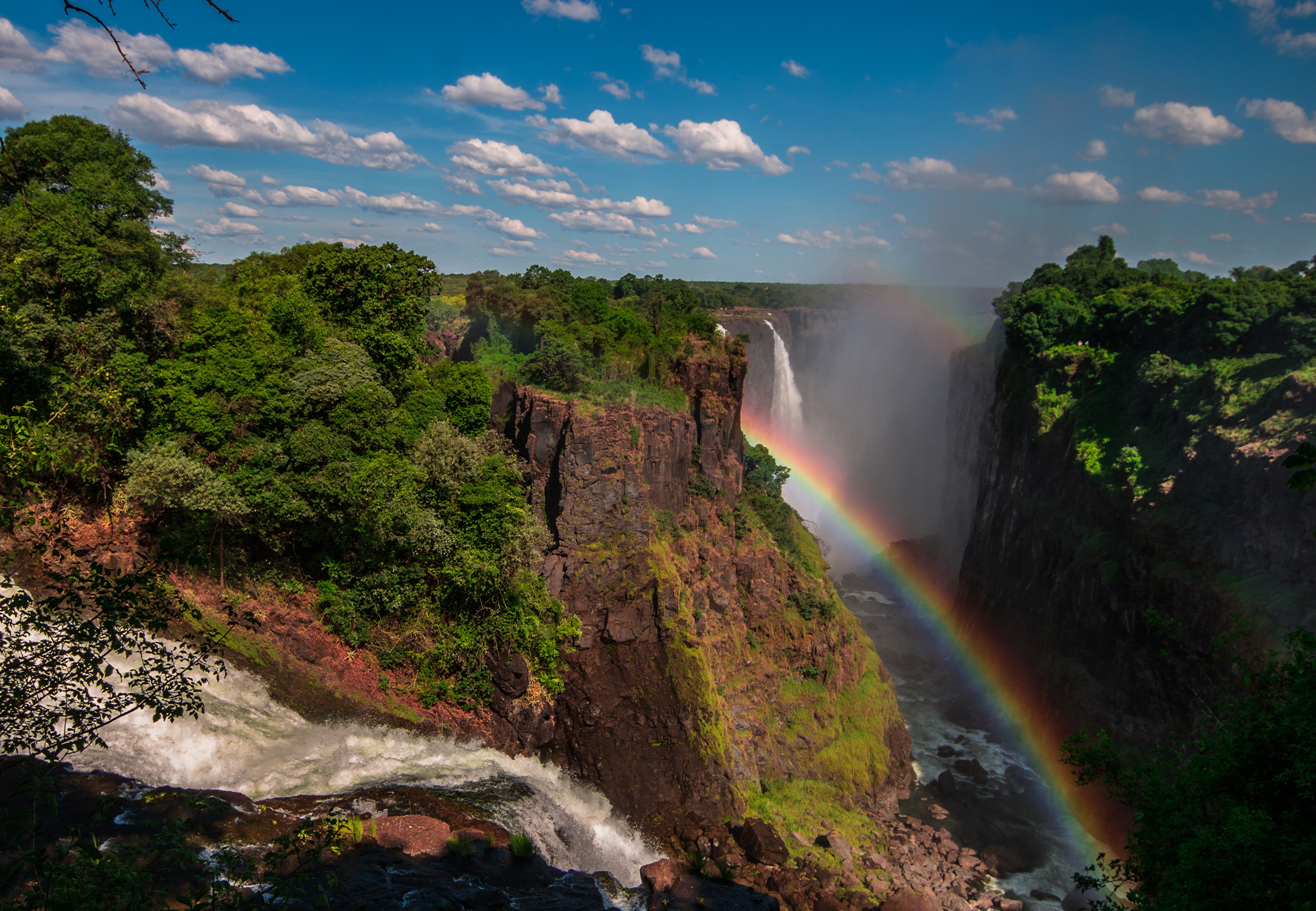 Радуга над водопадом на утесе - 2700x1869