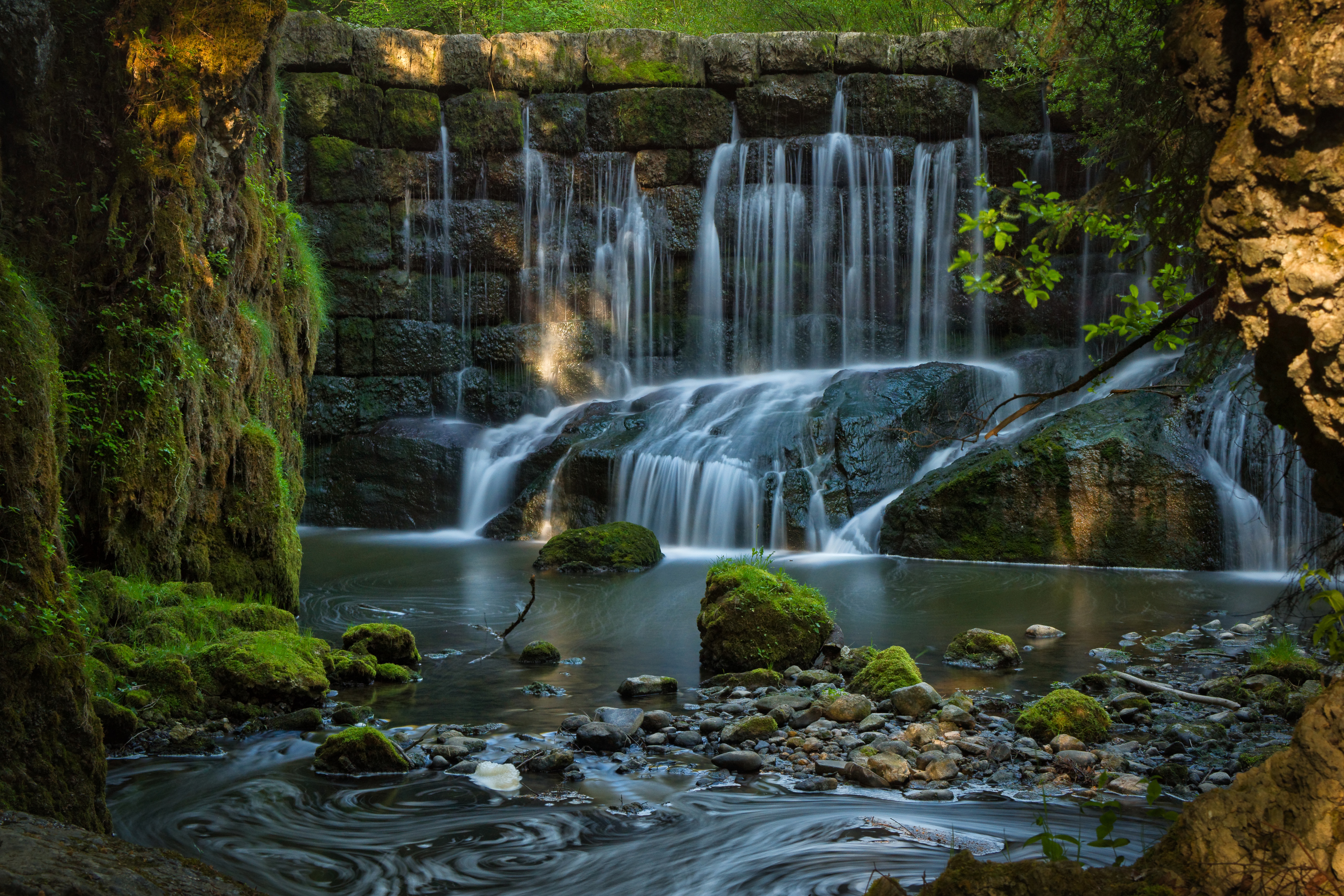 Водопад пробивается сквозь покрытые мхом камни - 5627x3752