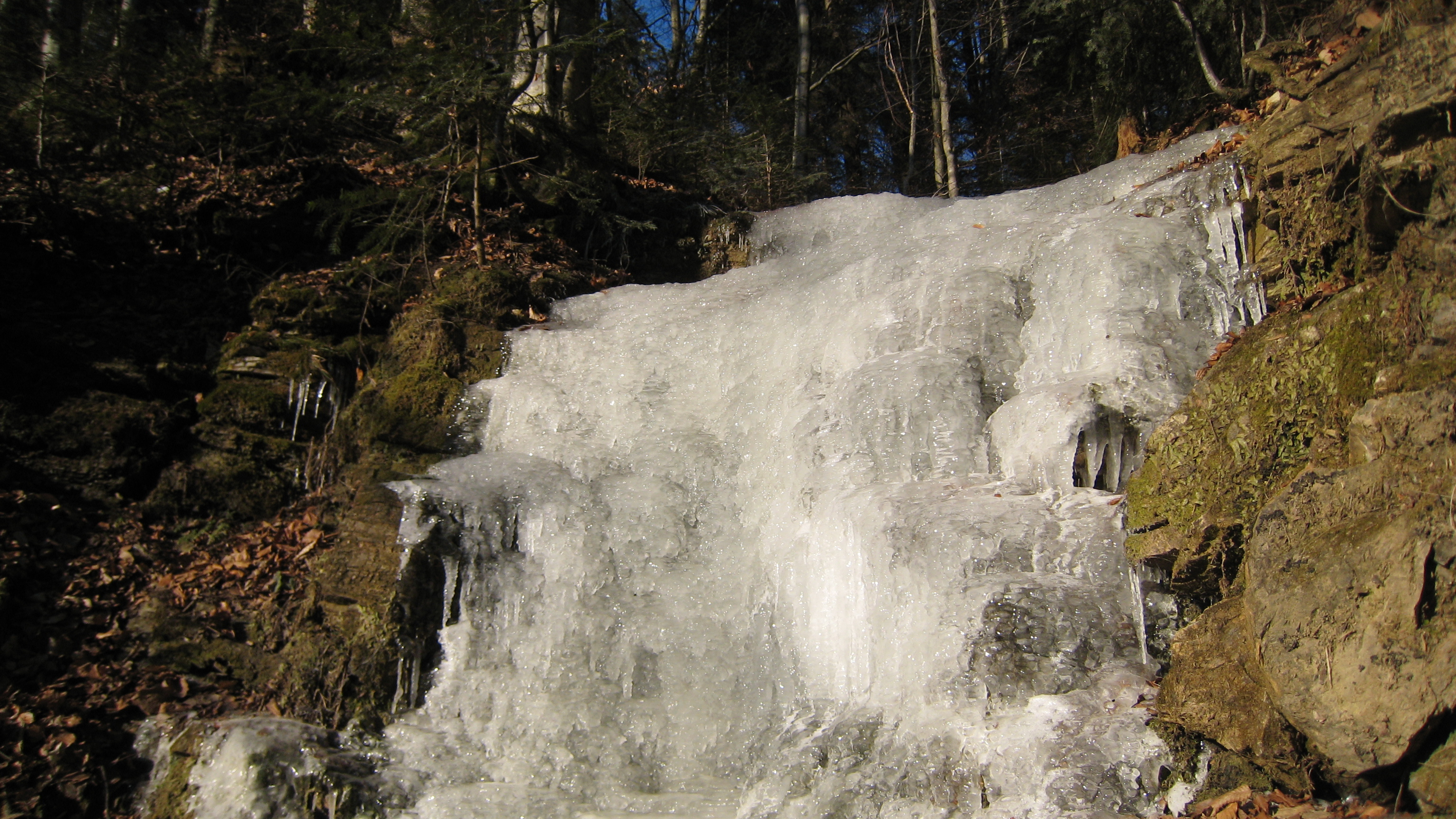 Замерзший водопад в лесу - 3072x1728