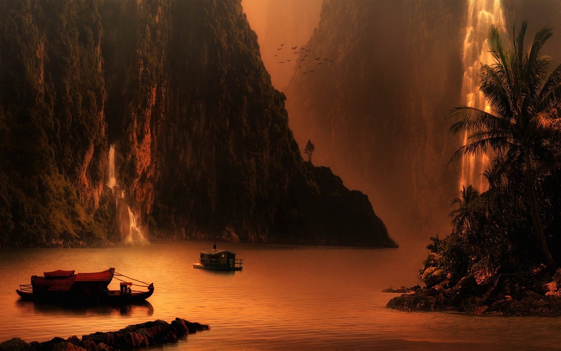 Уютная гавань между покрытых зеленью скал - 1920x1200