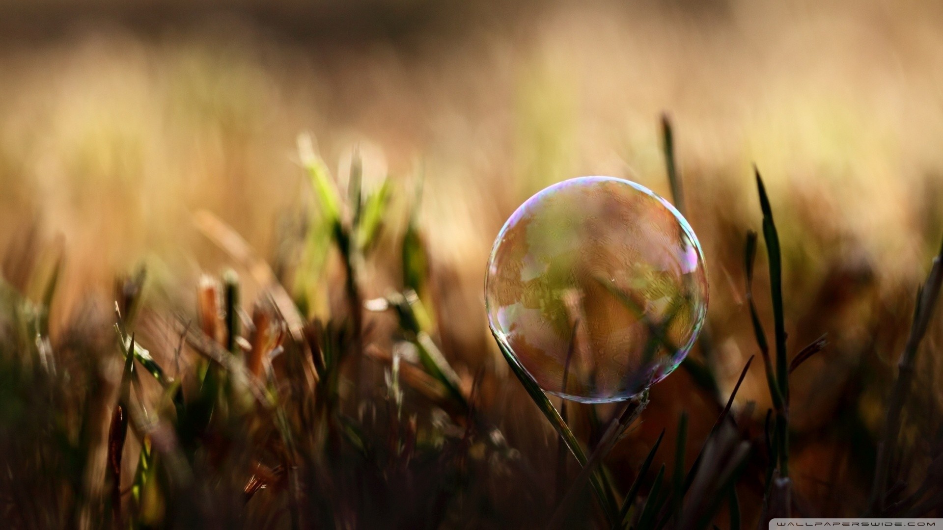 Обои: Мыльный пузырь на травинке