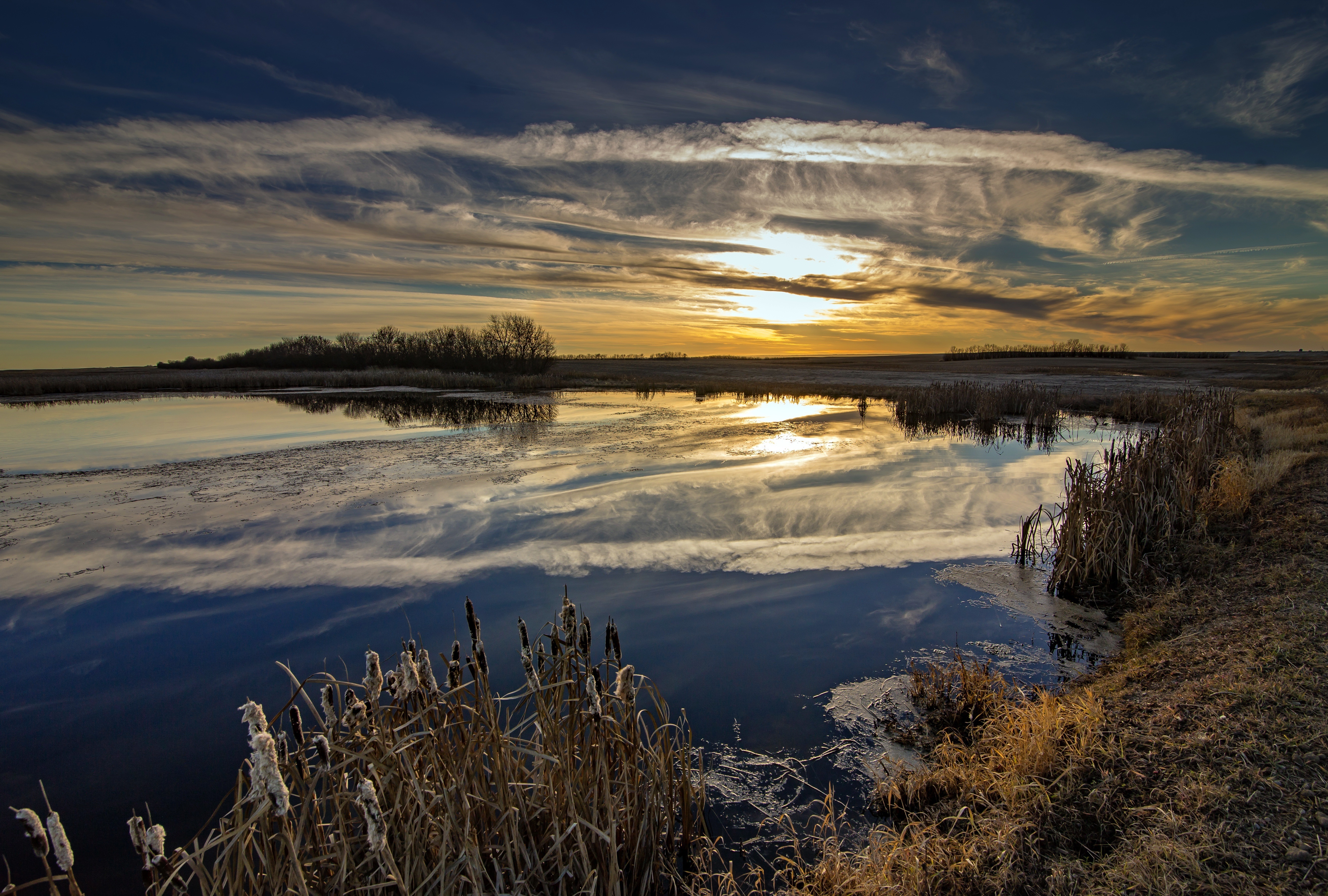 Белые облака отражаются в воде на закате солнца - 5332x3598
