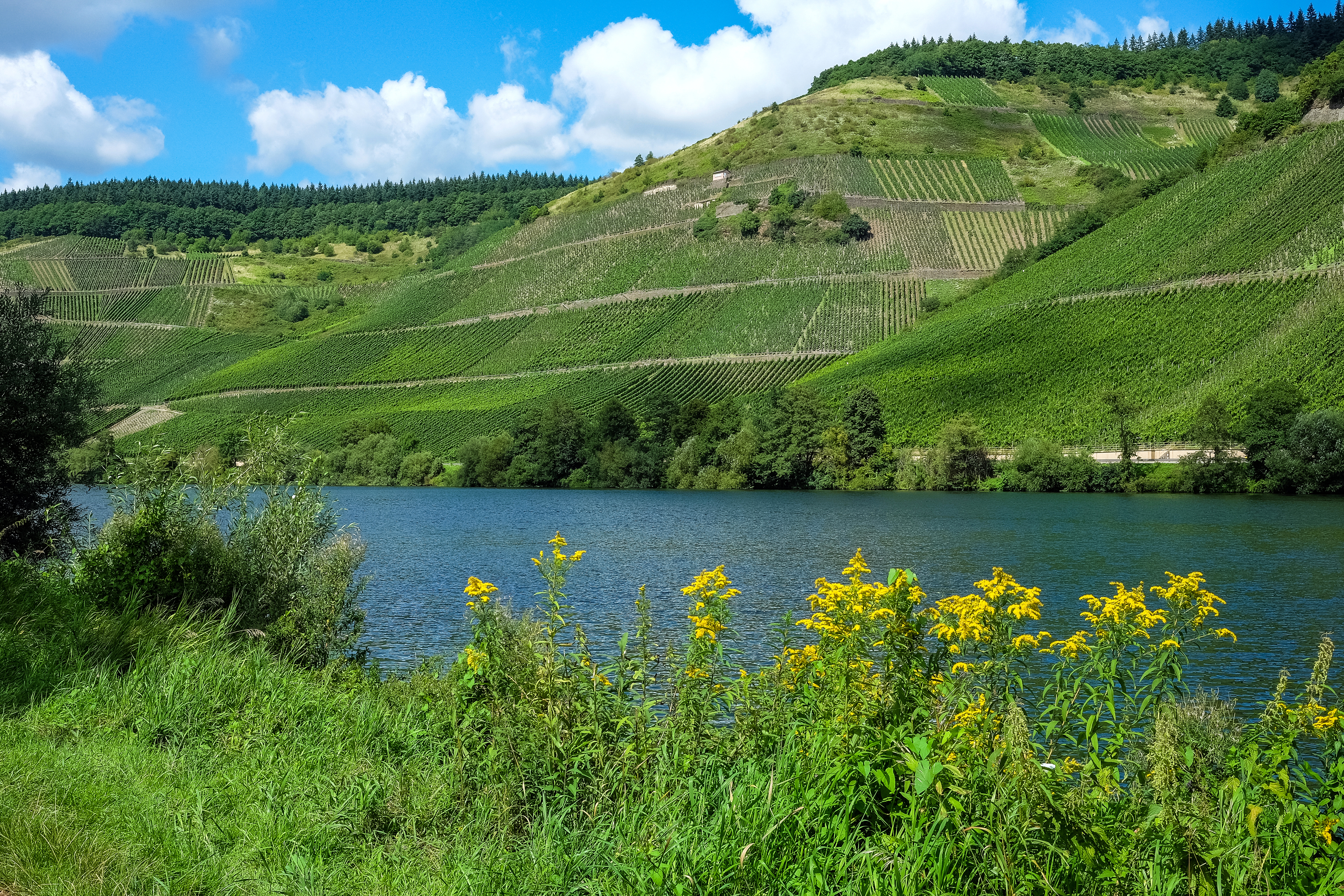 Зеленые поля на фоне реки - 4050x2700